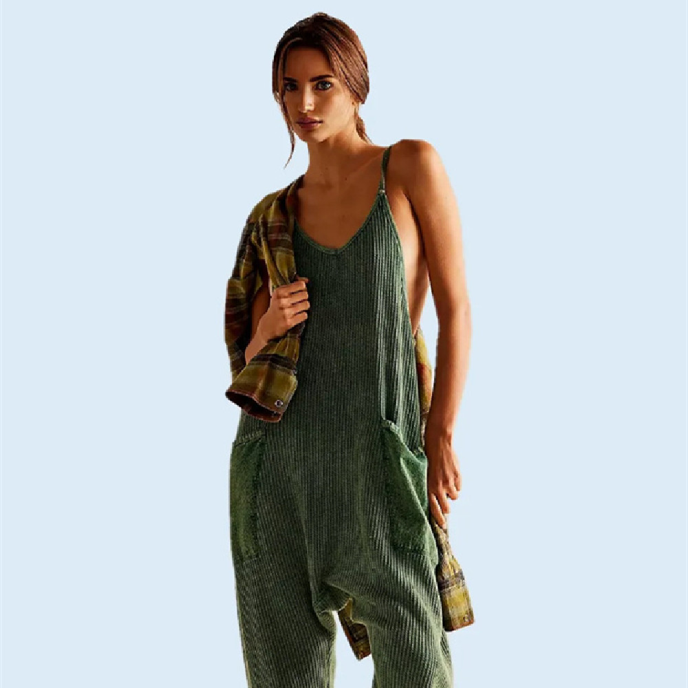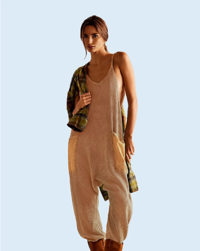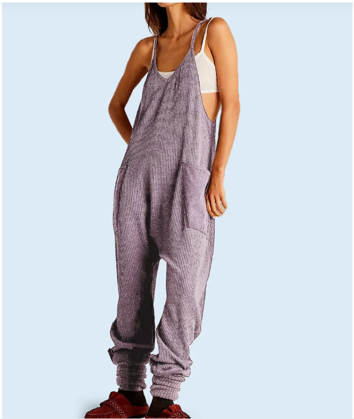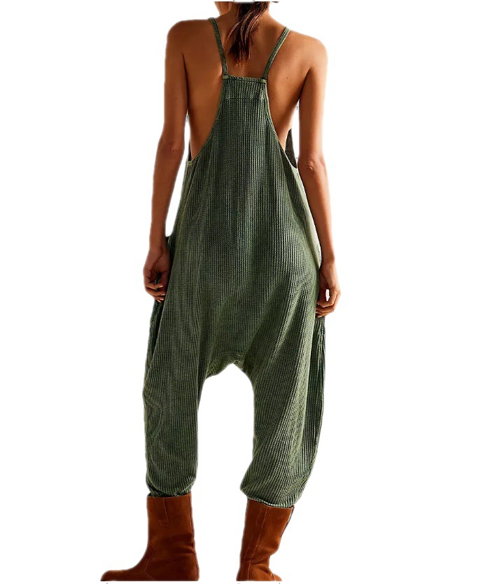 Solid Color Casual Suspender Trousers Women