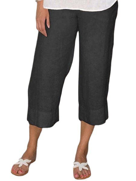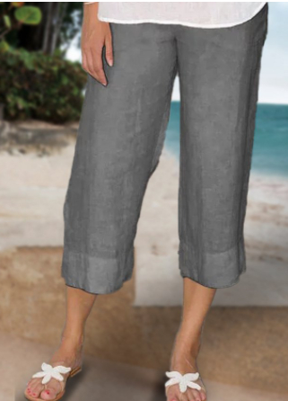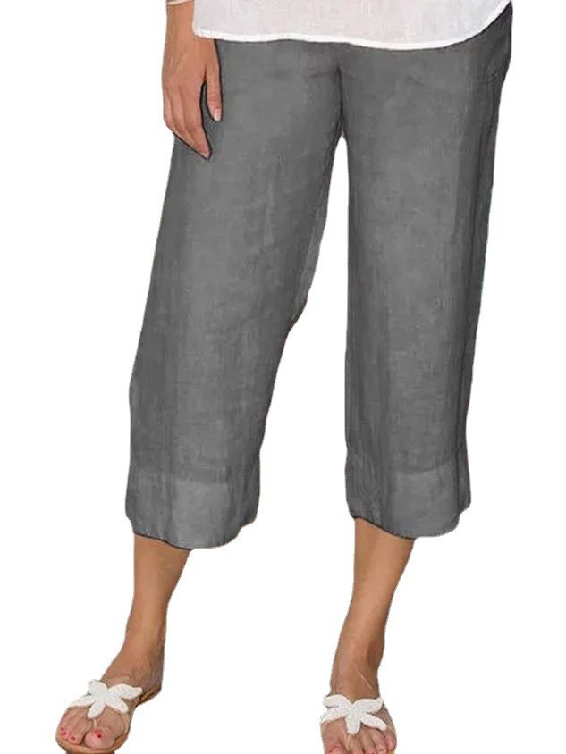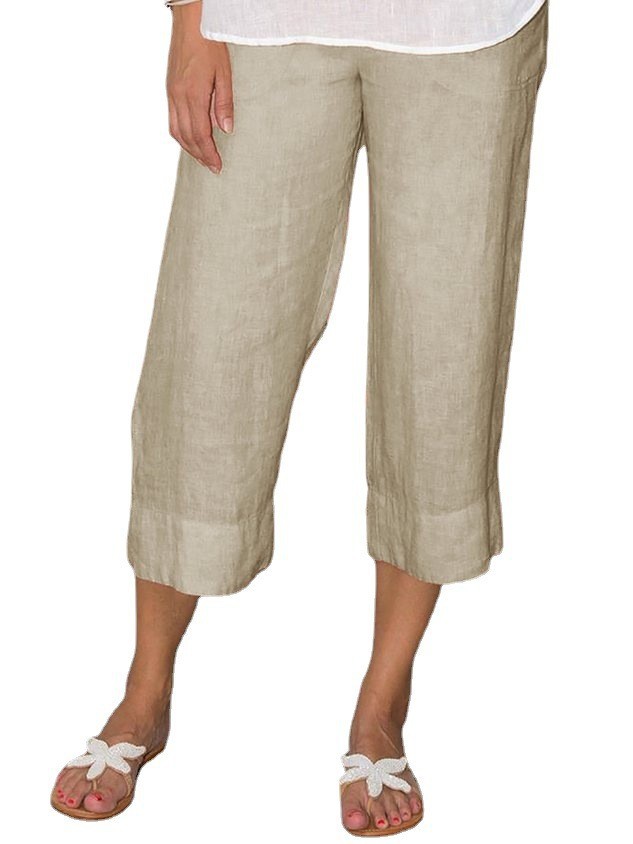 Solid Color Cotton And Linen Women's Simple Loose Casual Cropped Pants