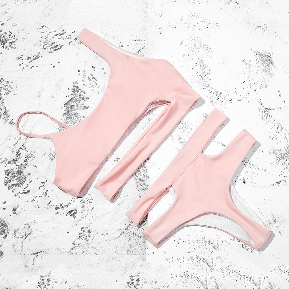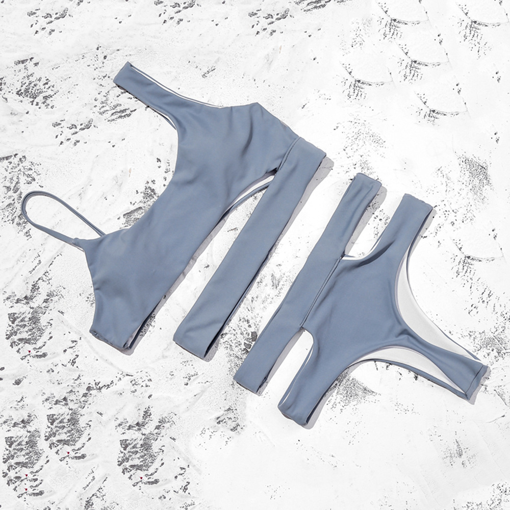 Solid color cutout high waist bikini