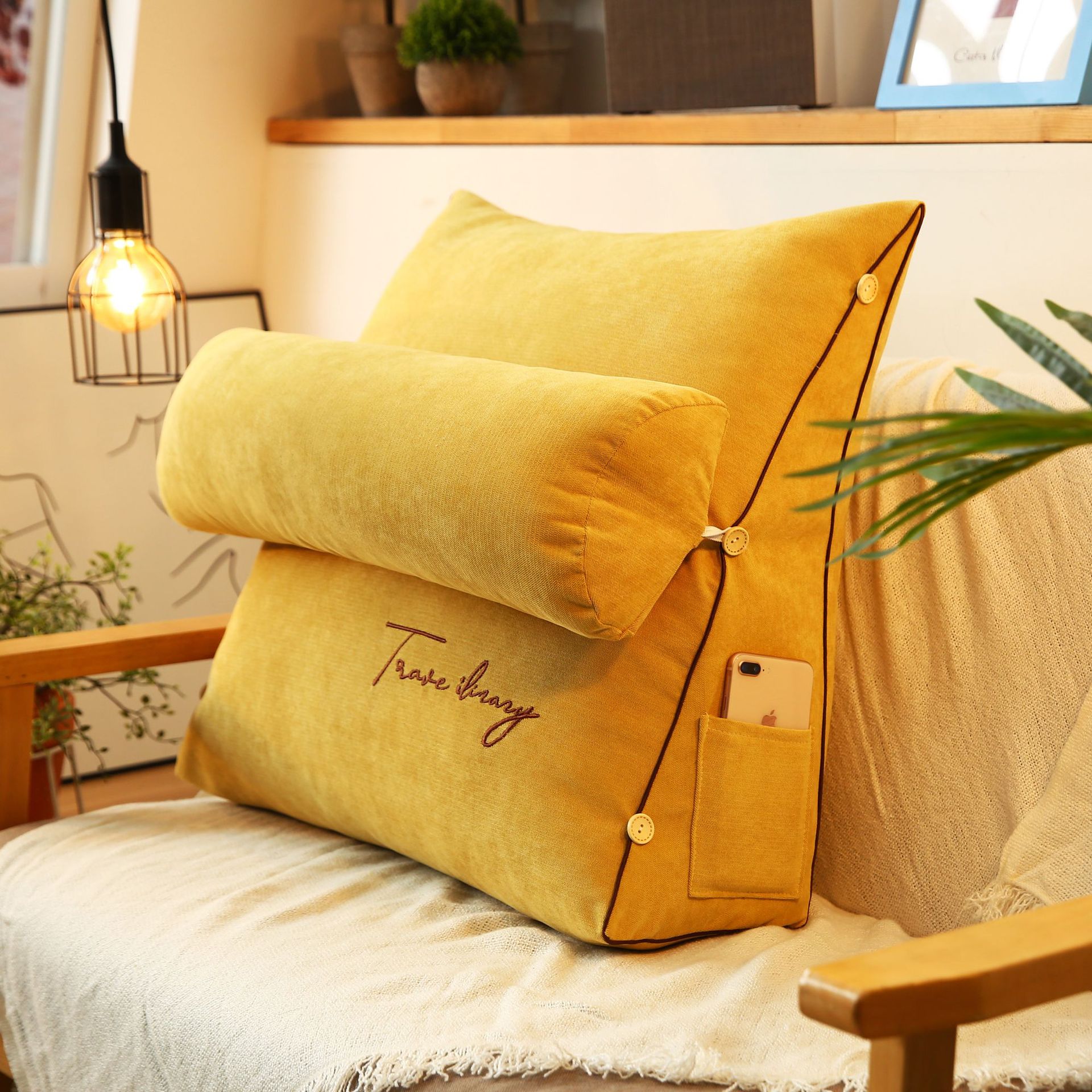 Solid Color Embroidered Triangle Cushion