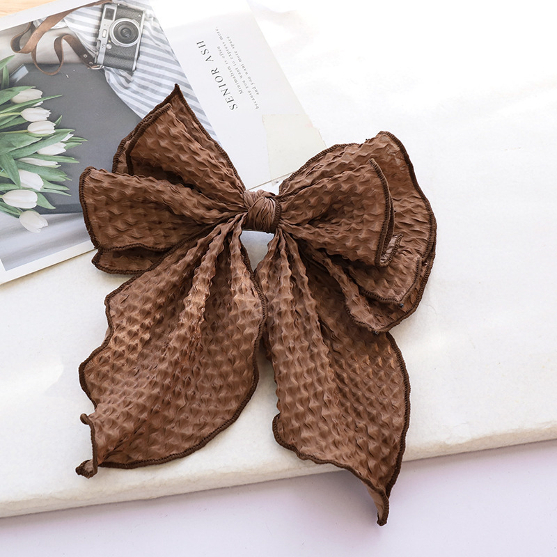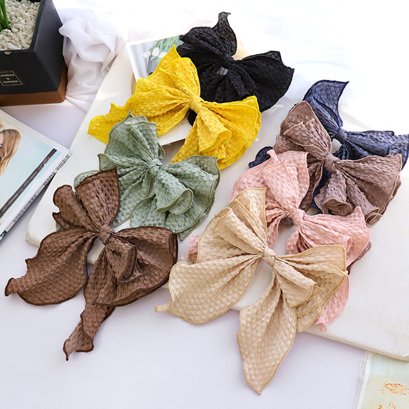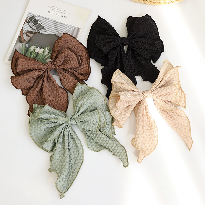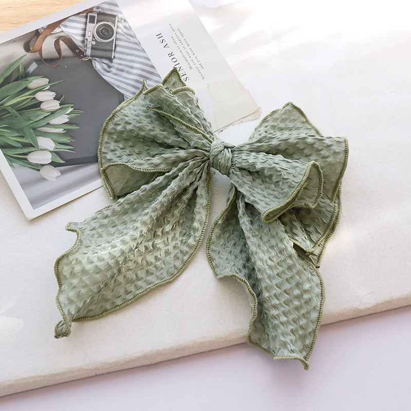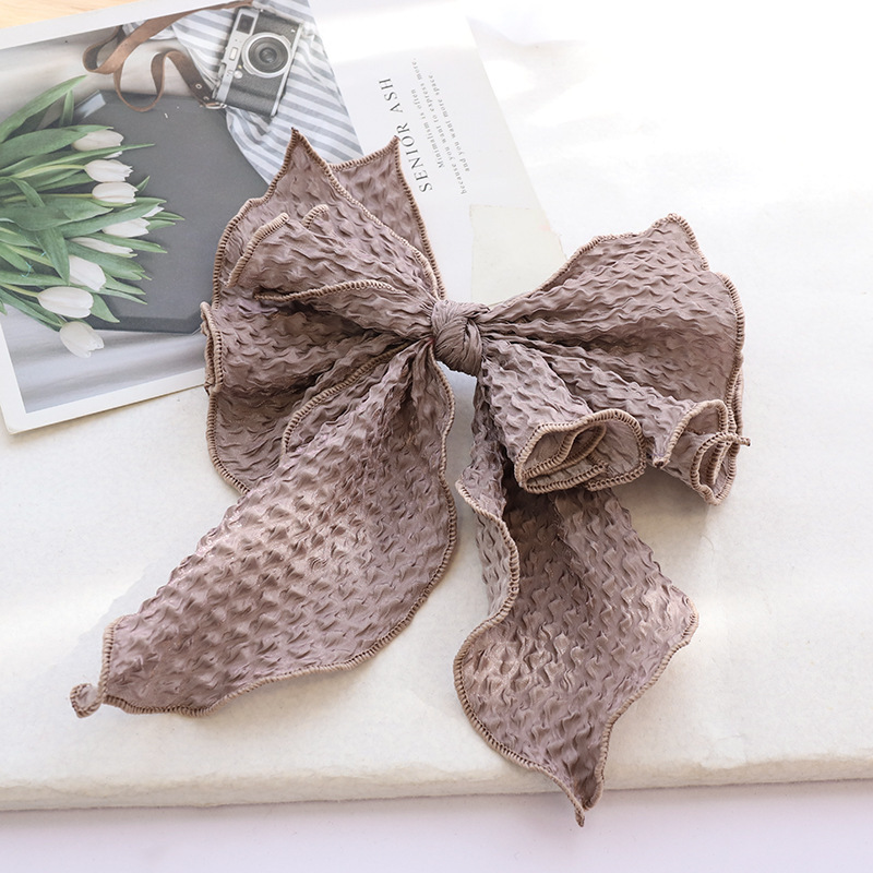 Color: black crumpled bow spring clip, blue crumpled bow spring clip, brown crumpled bow spring clip, green crumpled bow spring clip, beige crumpled bow spring clip, taro crumpled bow spring clip, pink crumpled Bow spring clip, yellow crumpled bow spring clip