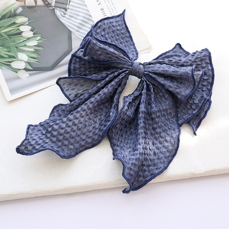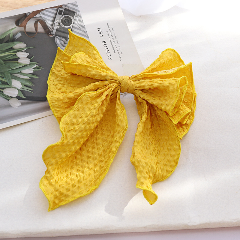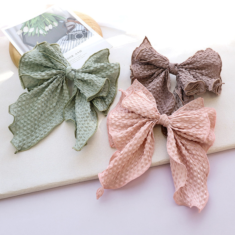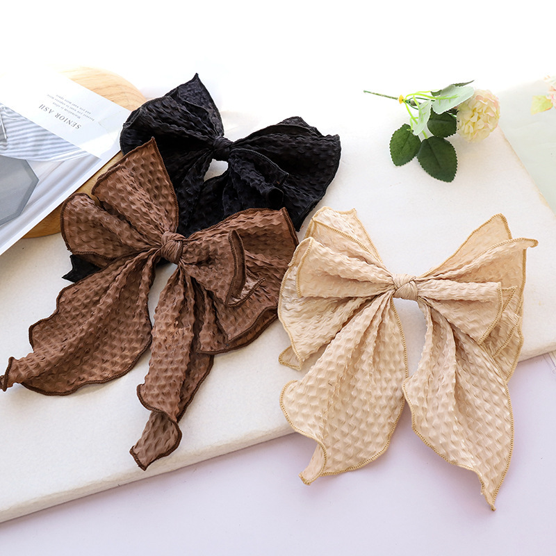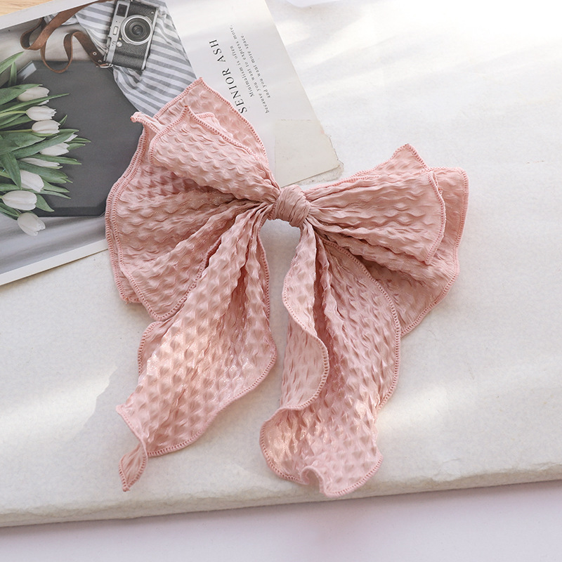Name: New Spring New Hairpin Solid Color Fabric Crumpled Bow Hair Accessories Ladies Back Head Ponytail Spring Clip