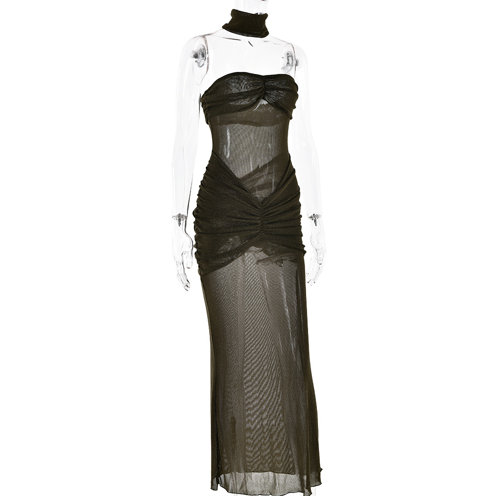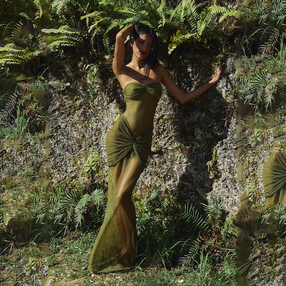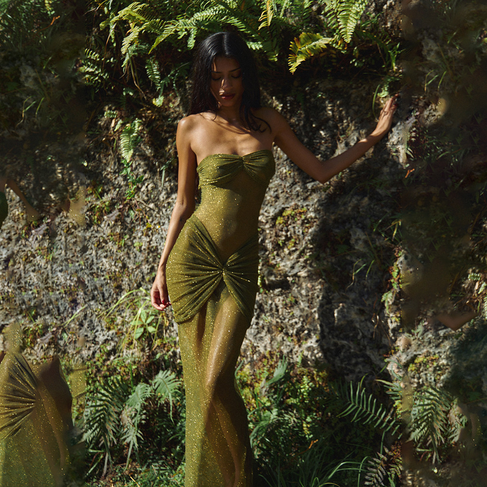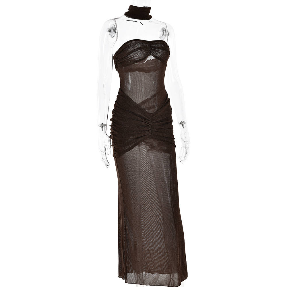 Color: brown, black, green, knitted silver string fabric, see-through bright silk design