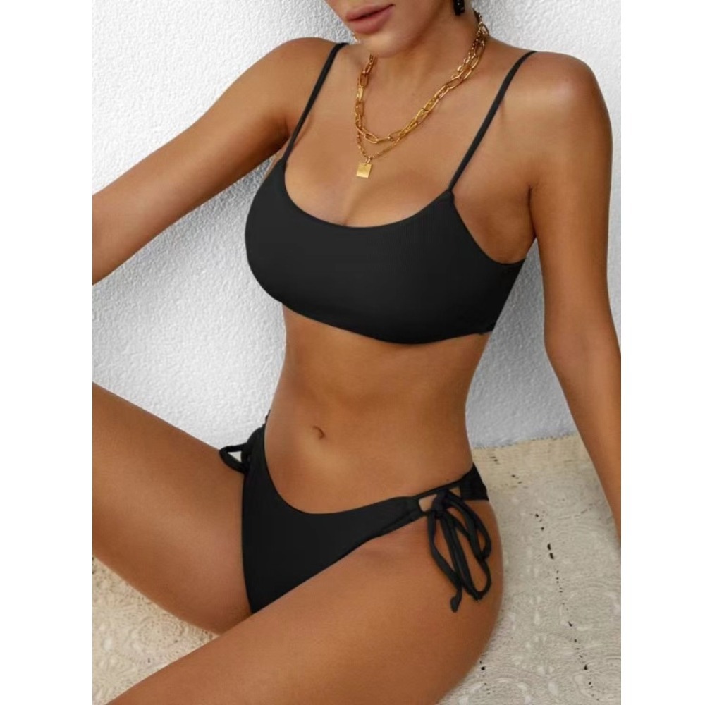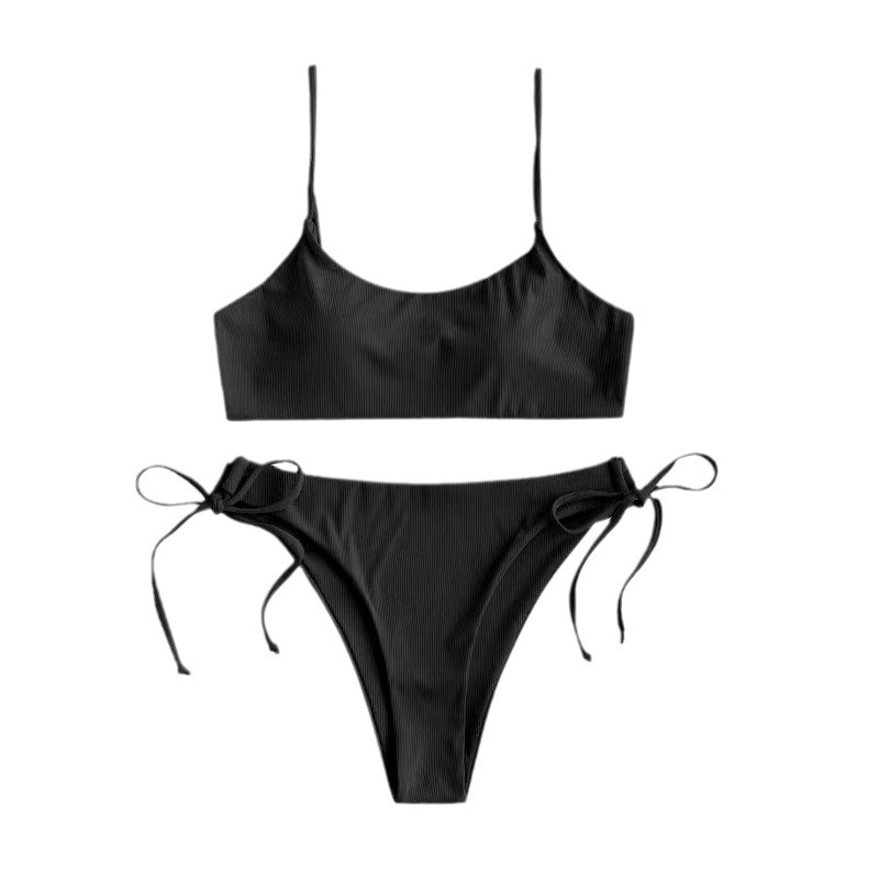 Color: Black two-piece swimsuit, light blue two-piece swimsuit, pink two-piece swimsuit, green two-piece swimsuit