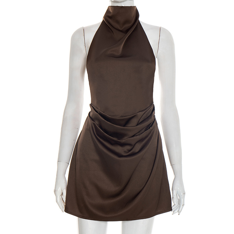 Solid-color Halter Strap Maxi Dress With A Bold Open Back