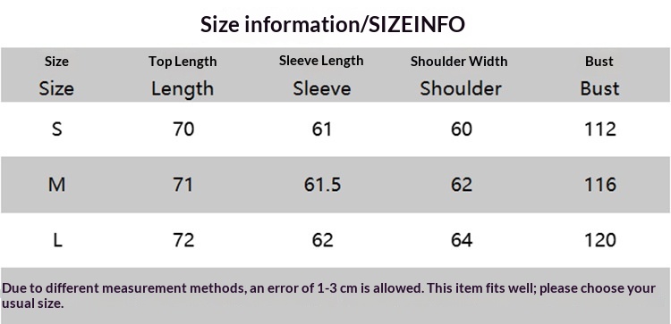 Sizes: S, M, L