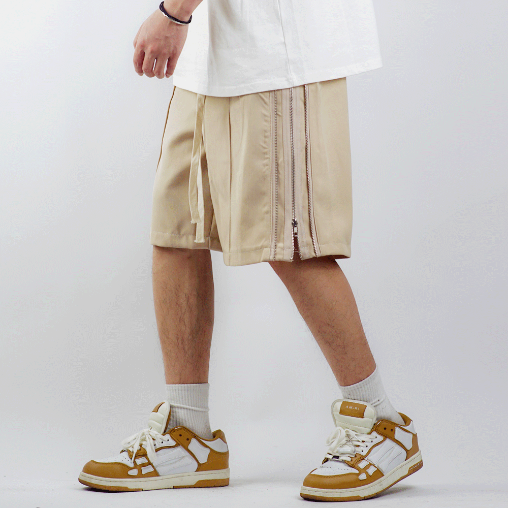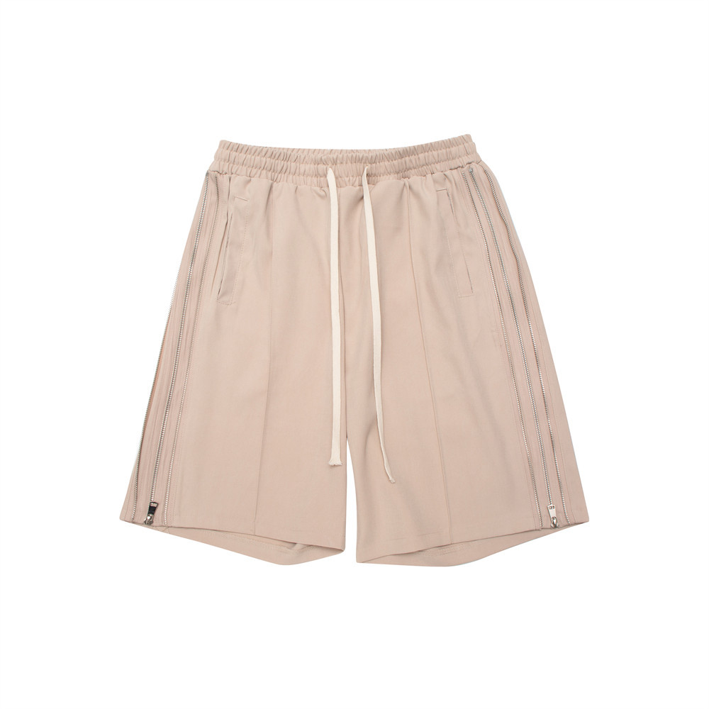 Solid Color High Street Side Zip Straight Shorts Men's