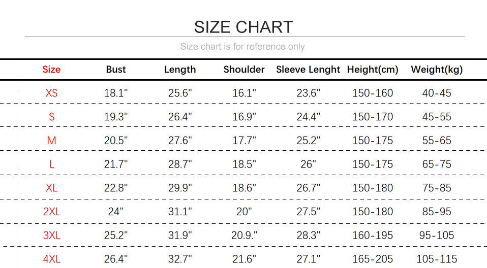 Size:   XS,S,M,L,XL,XXL,XXXL,XXXXL,4XL