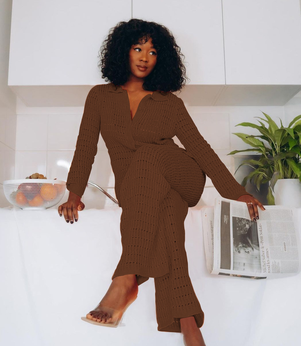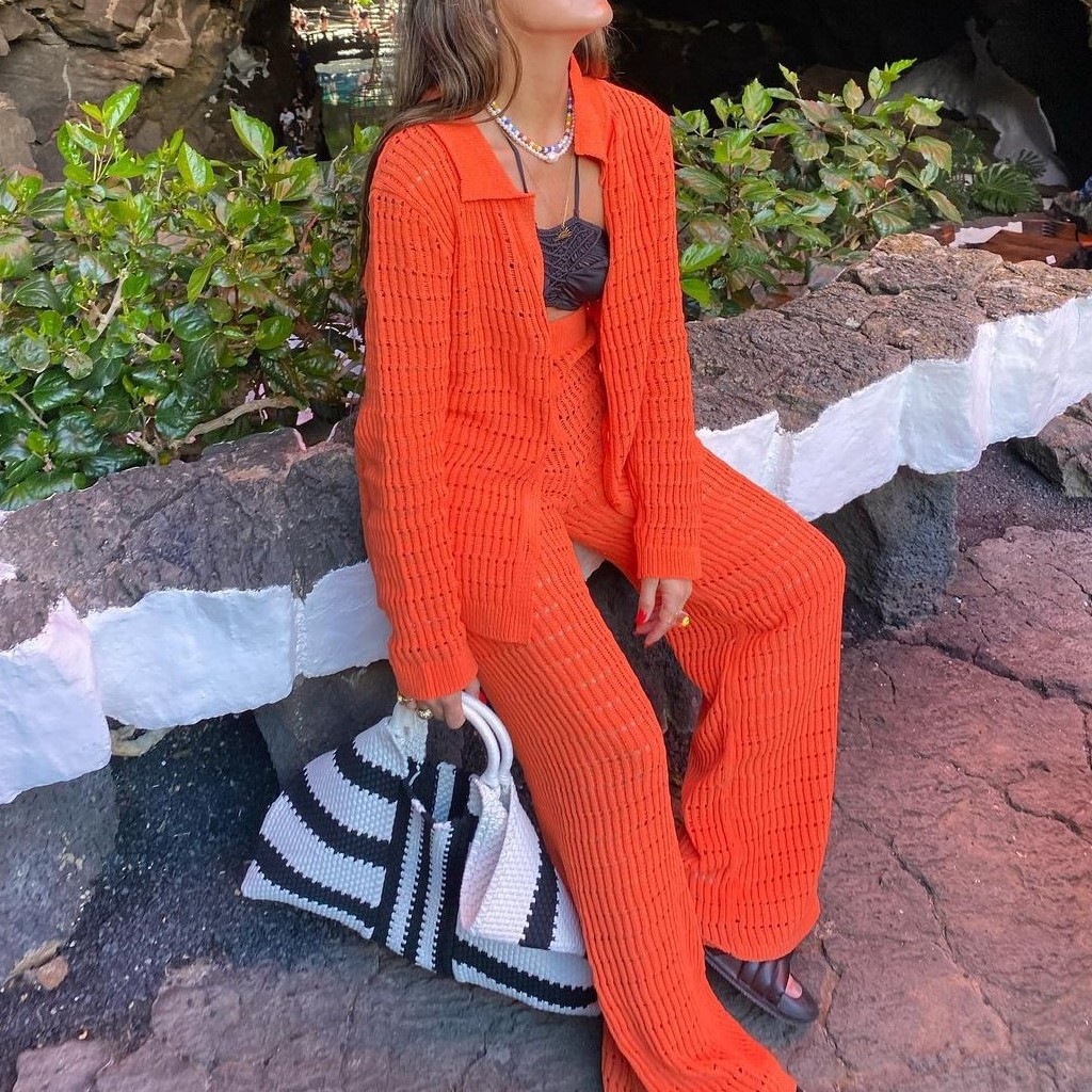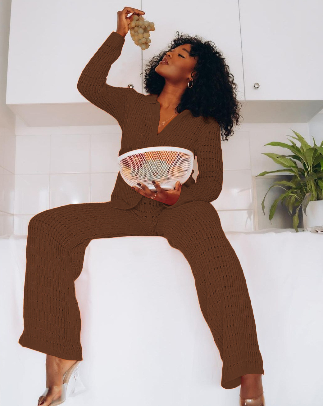 Solid Color Knit Shirt Straight Leg Pants Fashion Suit