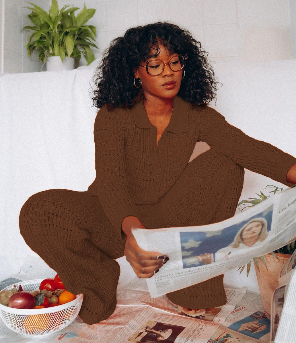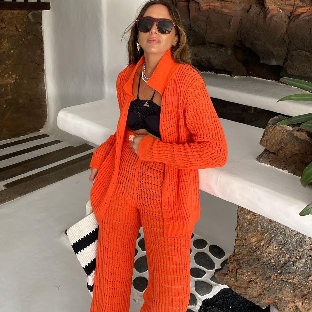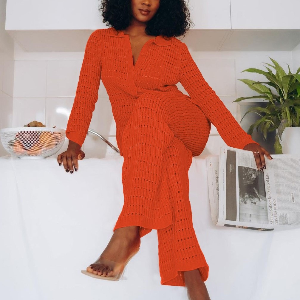 Solid Color Knit Shirt Straight Leg Pants Fashion Suit