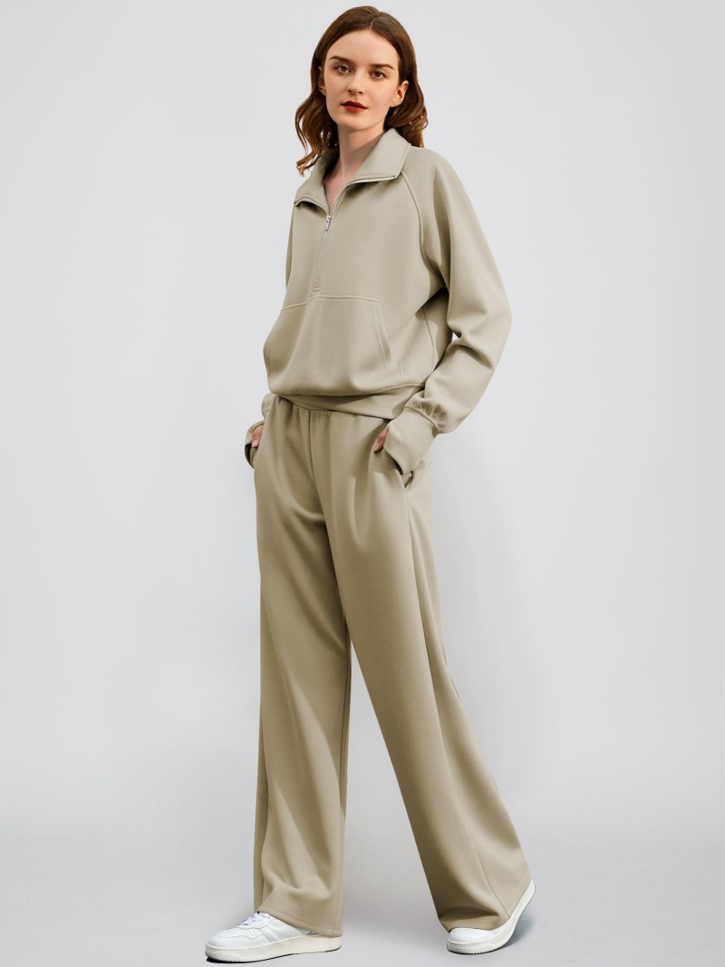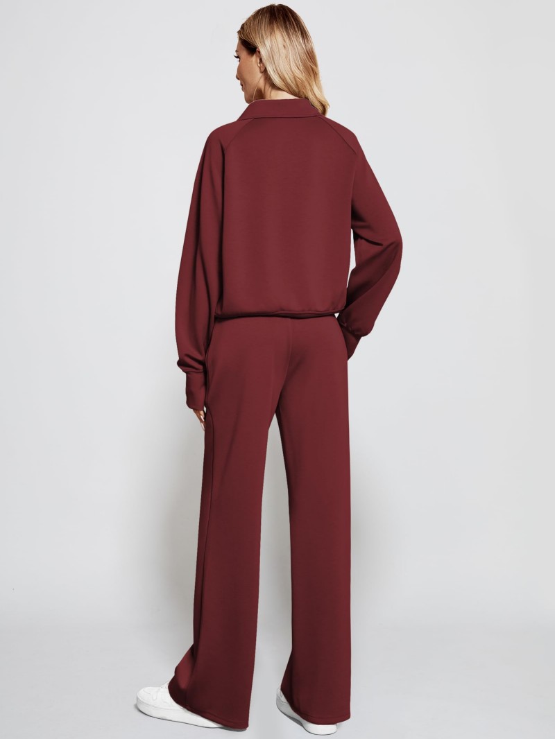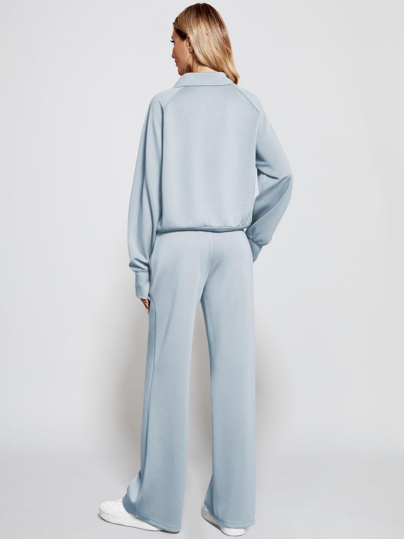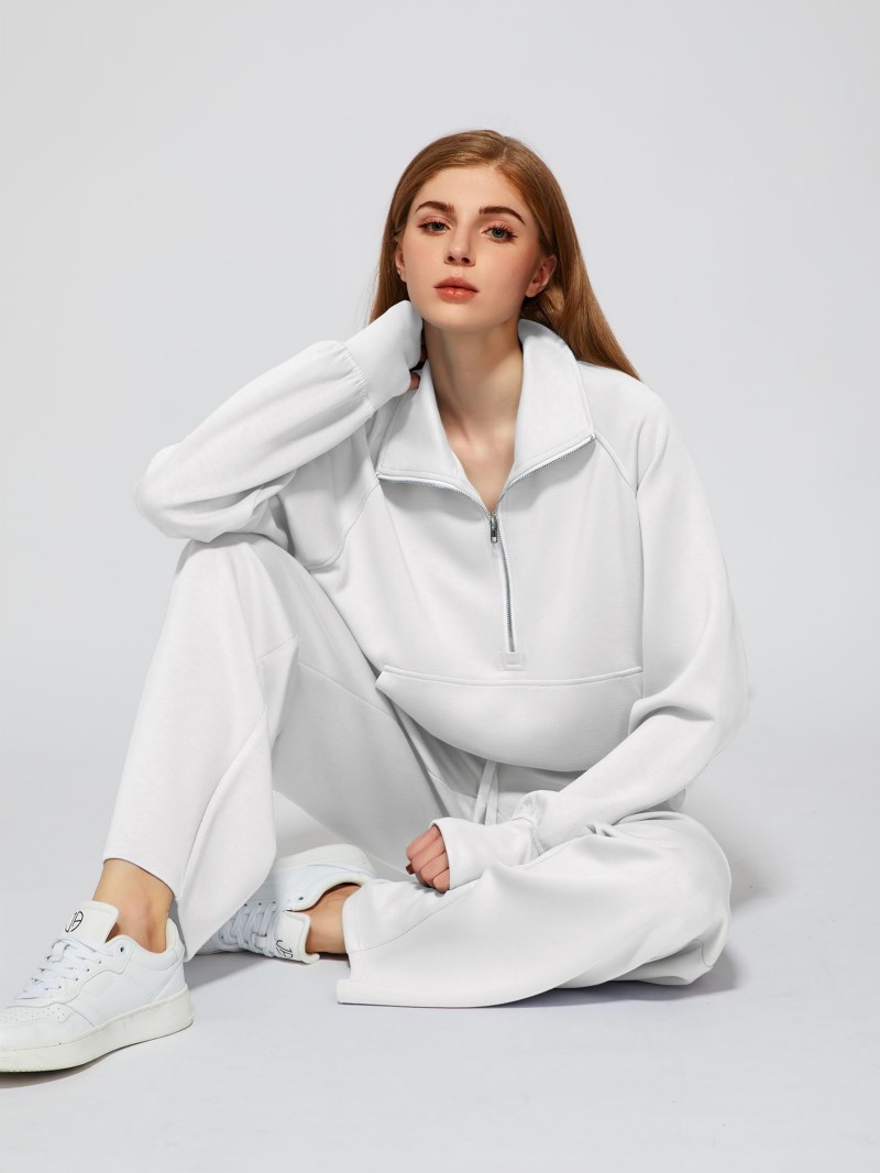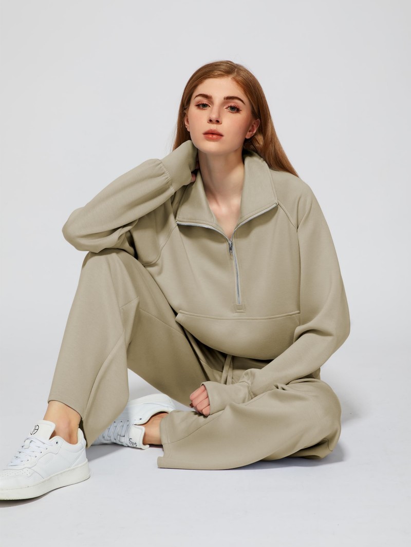 Solid Color Long-sleeve Zip-up Sweatshirt And Pants Set Two-piece Suit