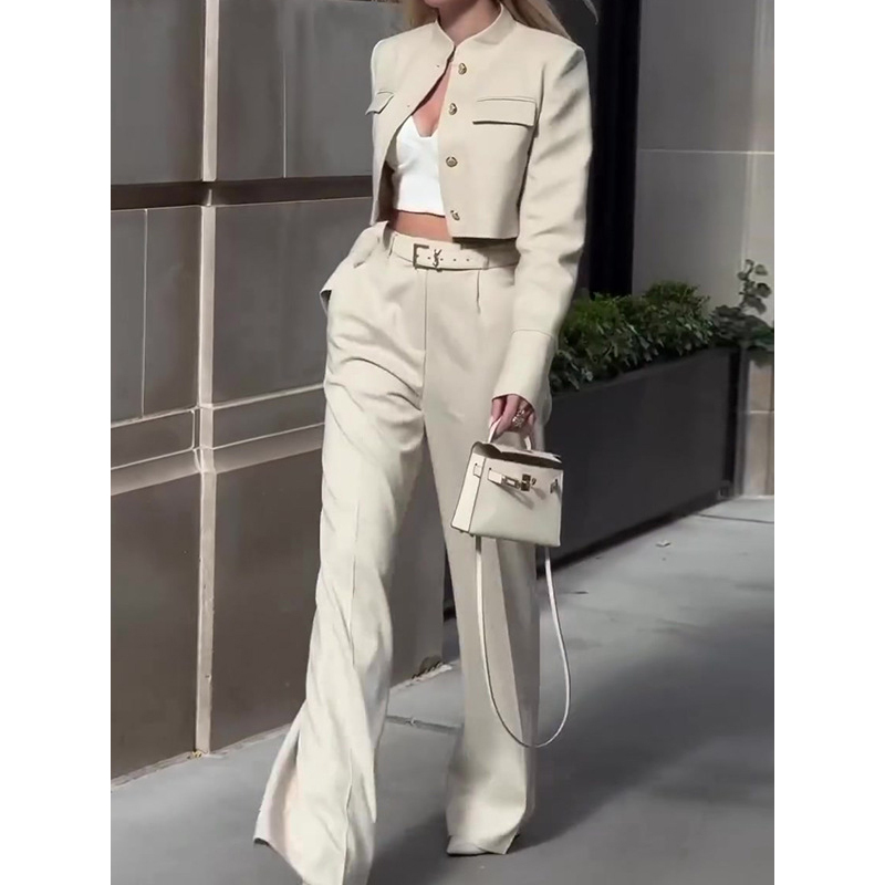 Solid Color Long-sleeved Top High-waisted Wide-leg Pants Suit