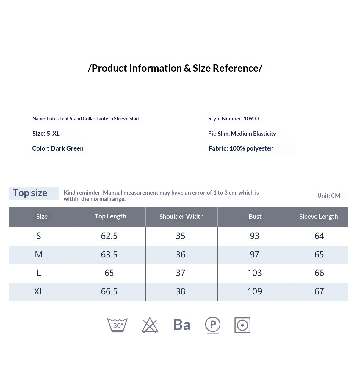 Sizes: S, M, L, XL
