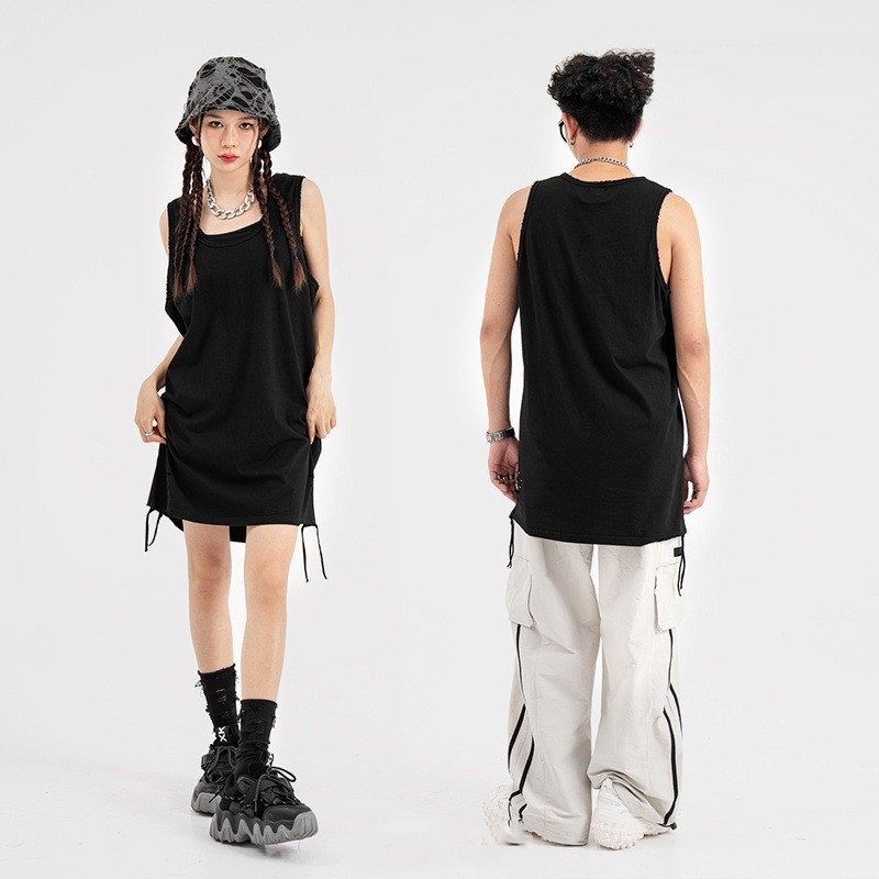 Solid Color Loose Round Neck Vest T-shirt