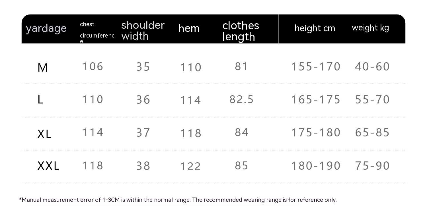 1. Asian sizes are 1 to 2 sizes smaller than European and American people. Choose the larger size if your size between two sizes. Please allow 2-3cm differences due to manual measurement. 2. Please check the size chart carefully before you buy the item, if you don't know how to choose size, please contact our customer service. 3.As you know, the different computers display colors differently, the color of the actual item may vary slightly from the following images.