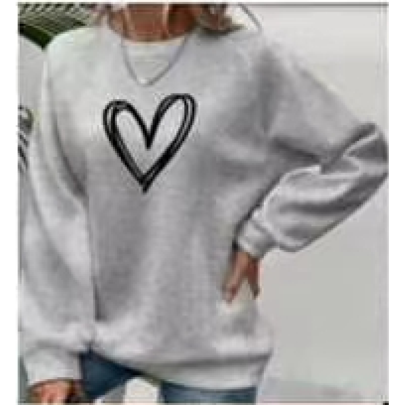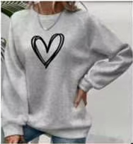 Solid Color Love Print Round Neck Pullover Hoodie