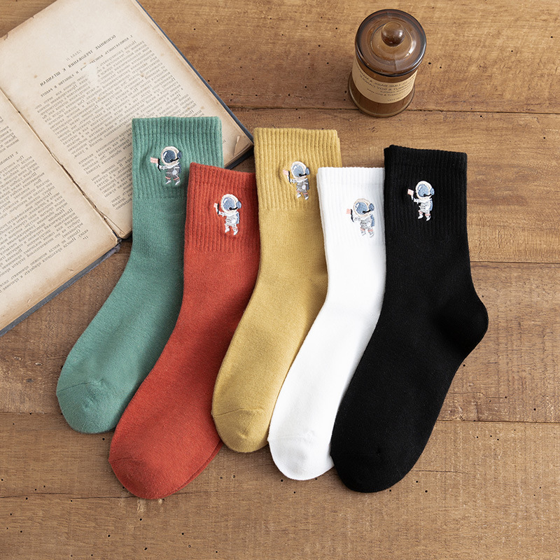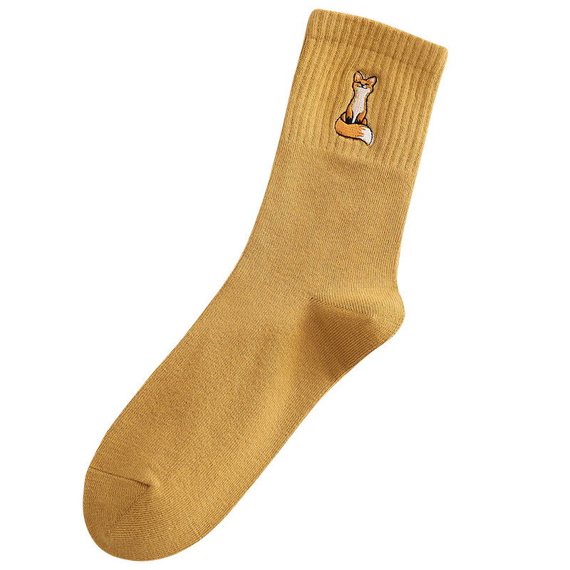 Solid Color Medium Tube Cotton Socks Women's Fox Embroidery High Top Corset Waist