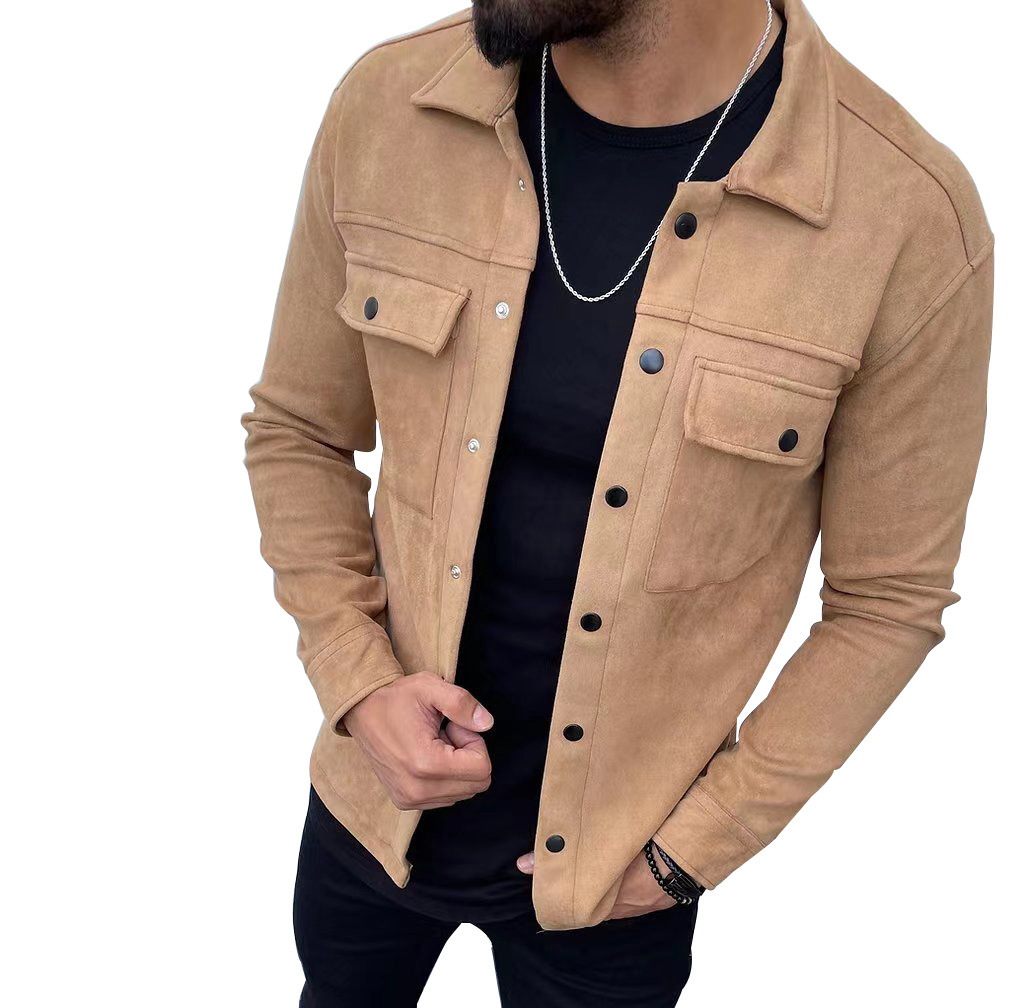 Solid Color Men's Coat Suede Fabric Jacket Coat