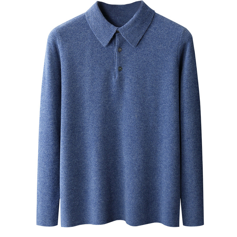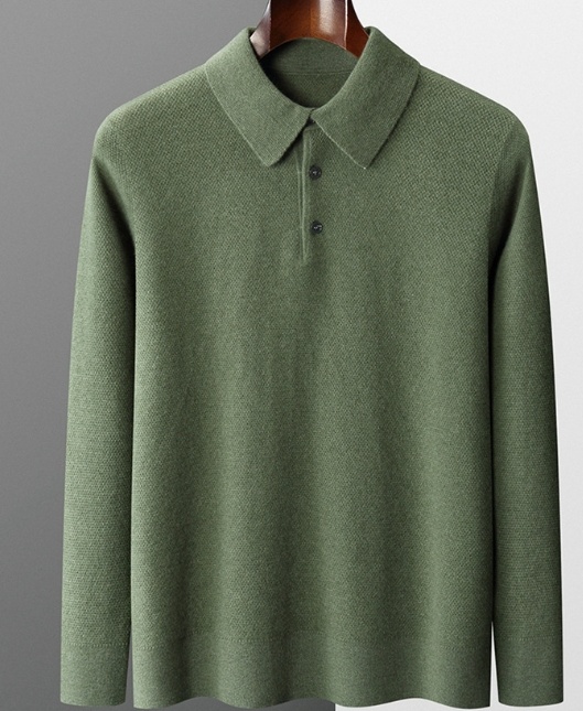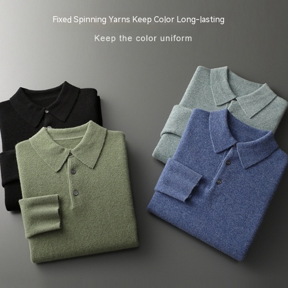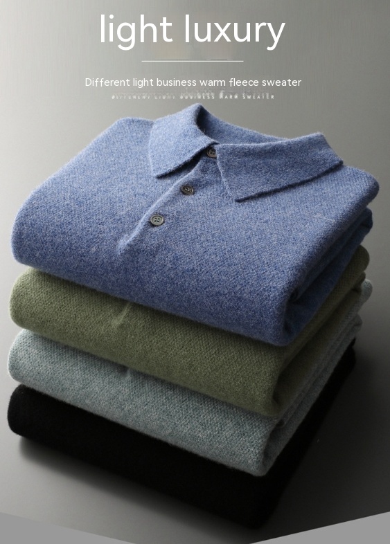 Solid Color Men's Polo Collar Thick Cardigan Loose Casual Knitted Bottoming Shirt