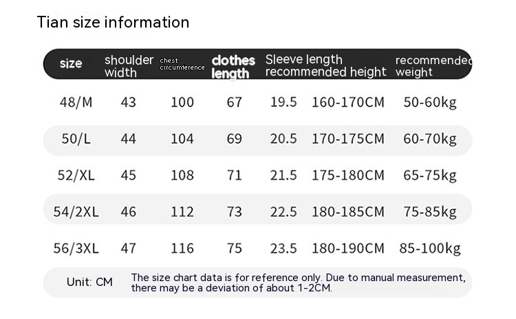 1. Asian sizes are 1 to 2 sizes smaller than European and American people. Choose the larger size if your size between two sizes. Please allow 2-3cm differences due to manual measurement. 2. Please check the size chart carefully before you buy the item, if you don't know how to choose size, please contact our customer service. 3.As you know, the different computers display colors differently, the color of the actual item may vary slightly from the following images.