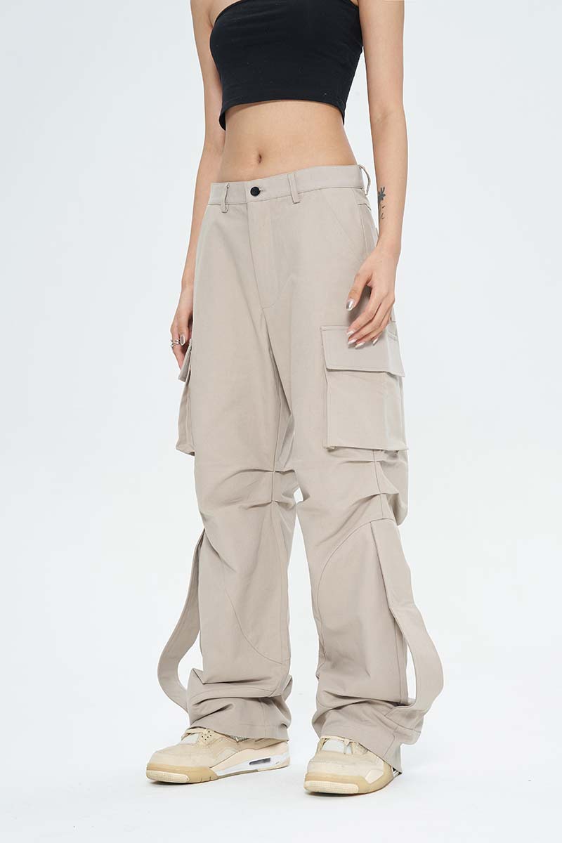 Solid Color Multi-pocket Overalls