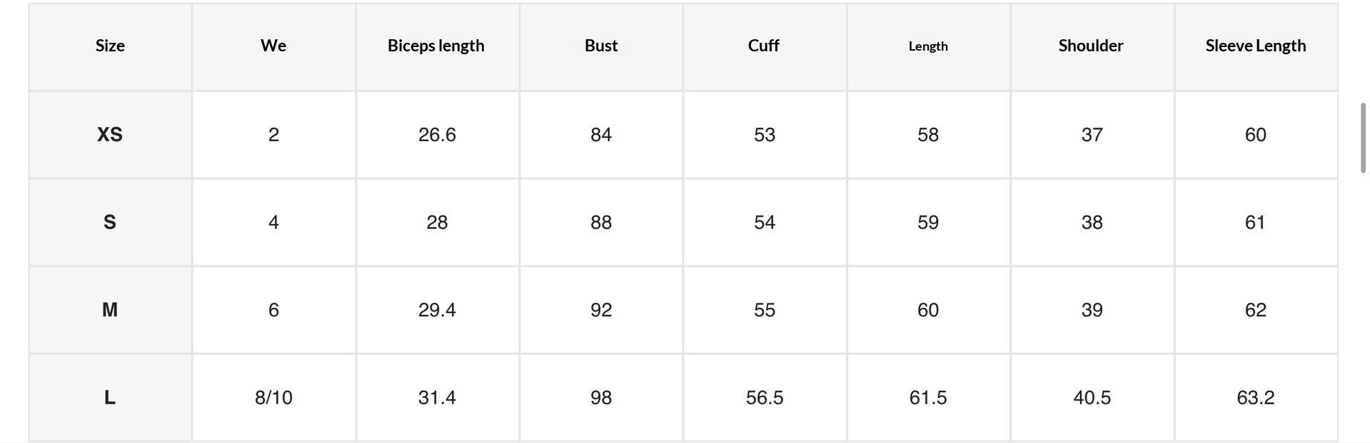 Sizes: S, M, L, XL