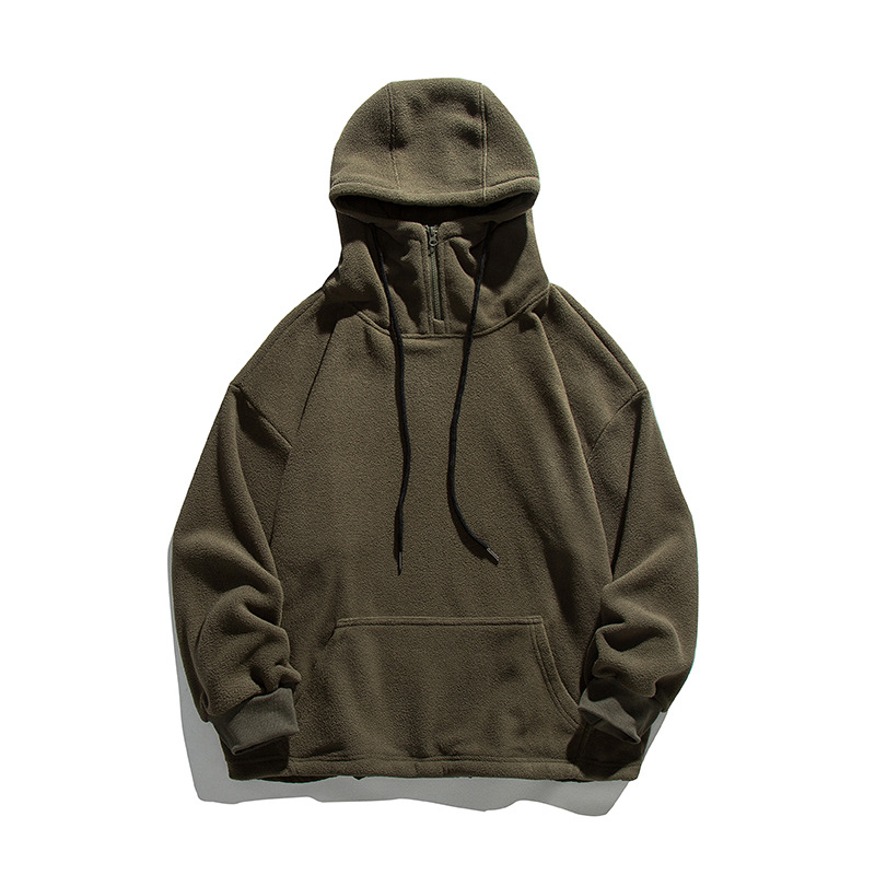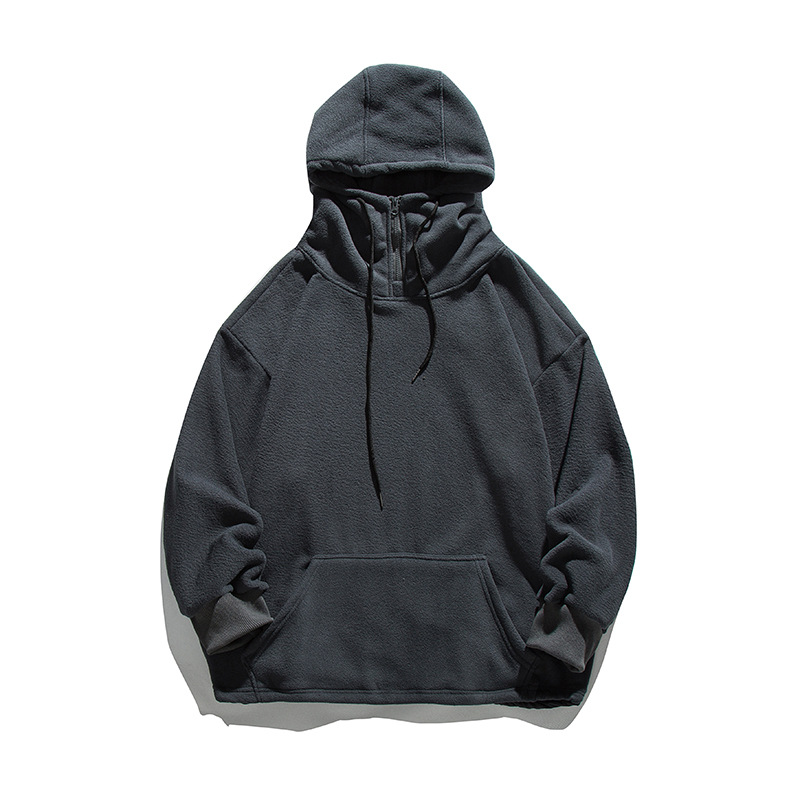 Solid Color Polar Fleece Hooded Sweater Retro Stitching Embroidery Hoodie