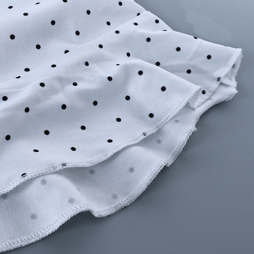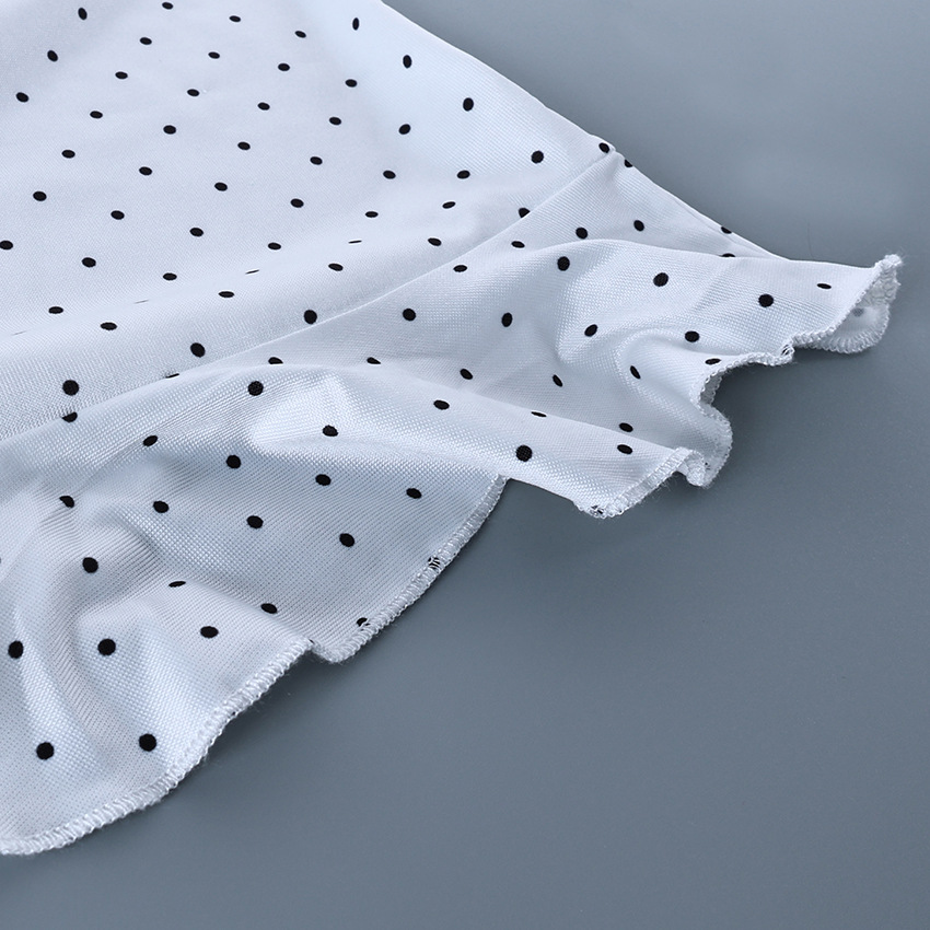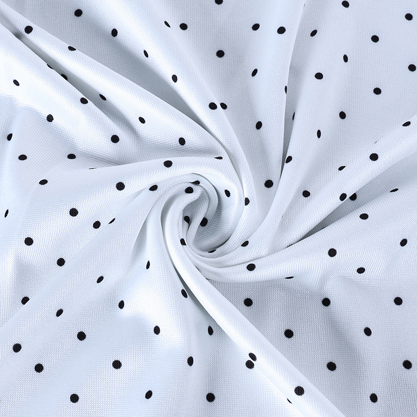 Color: Polka Dots (In Stock, Ships Immediately); Composition: 95% Polyester, 5% Spandex; Weight: 140 g; Customizable Colors and Sizes Available