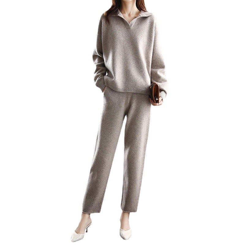 Solid Color Polo Collar Top Casual Wide Leg Pants Two-piece Set