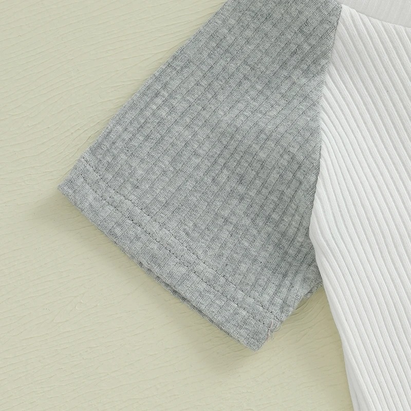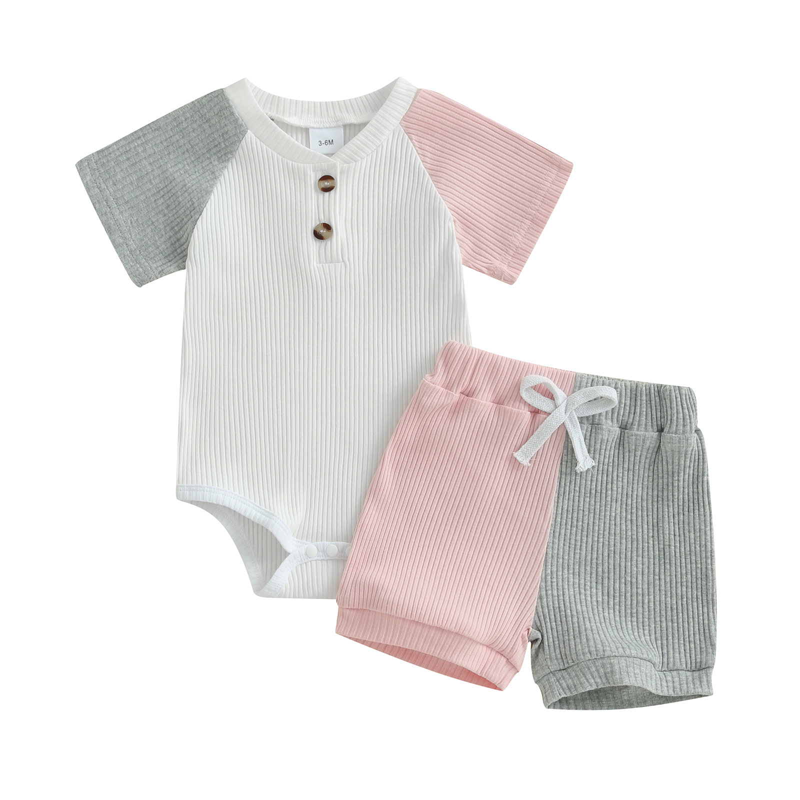 Solid Color Rib Fabric Color Matching Short Sleeve Suit