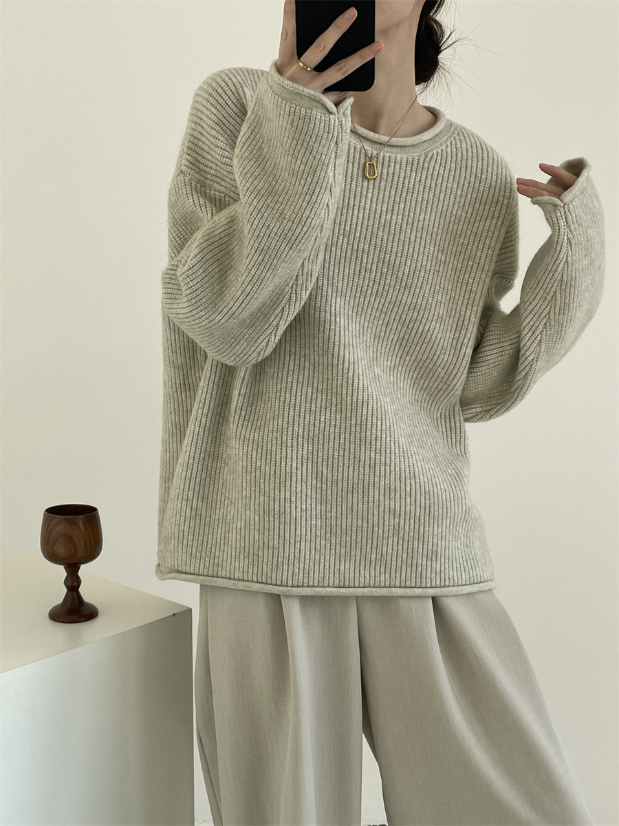 Solid-color Ribbed Irregular Knit Pullover Sweater