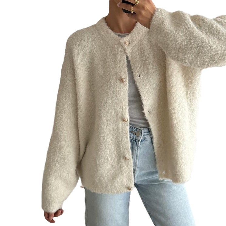 Solid Color Round Neck Single-breasted Coat