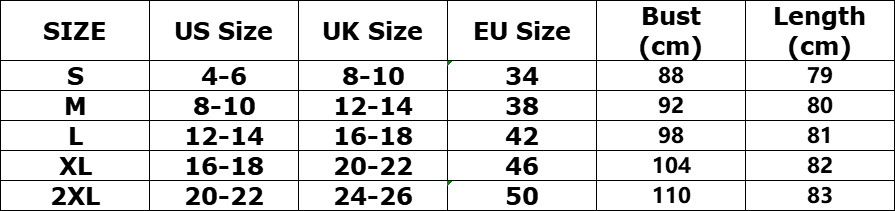 Sizes: S, M, L, XL, 2XL