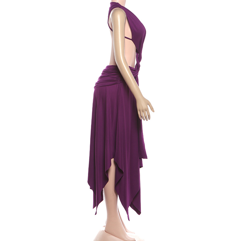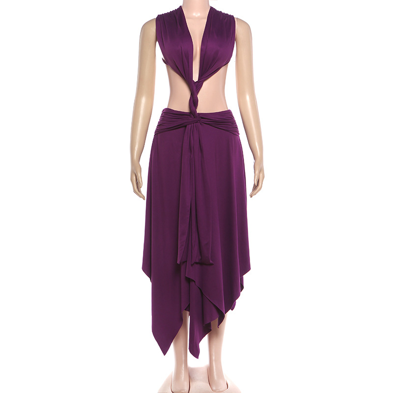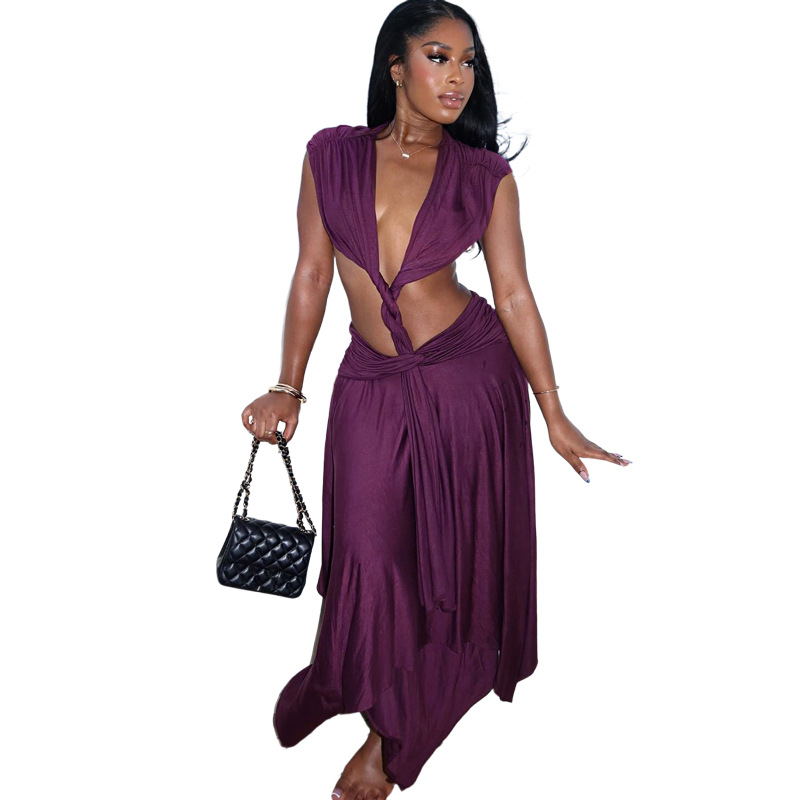 Solid-color Sexy Chic Sleeveless Low-cut V-neck Backless Dress