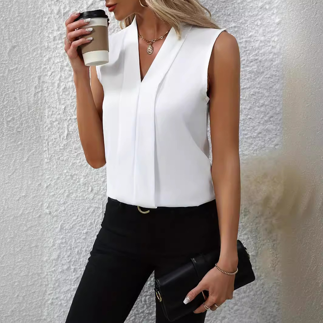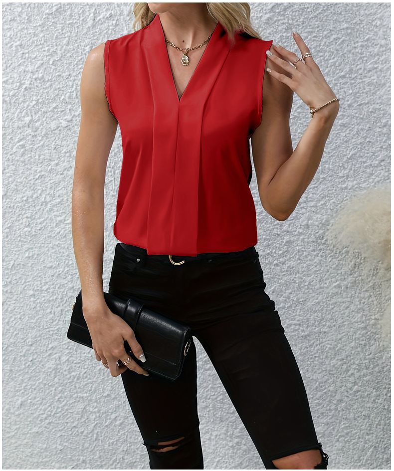 Solid Color Sexy V-neck Fashionable All-match Shirt