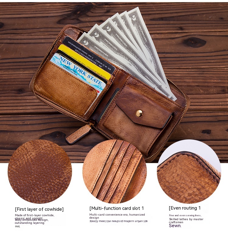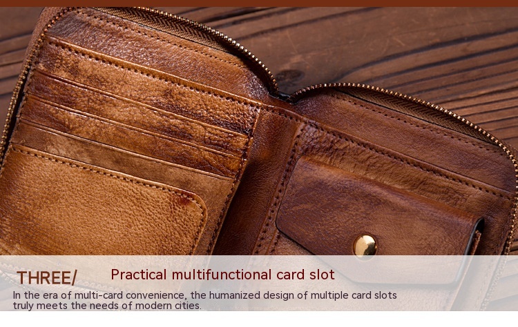 Internal structure of the packet: dark cell, photo holder, coin pocket, zippered pockets, ID holder, card position