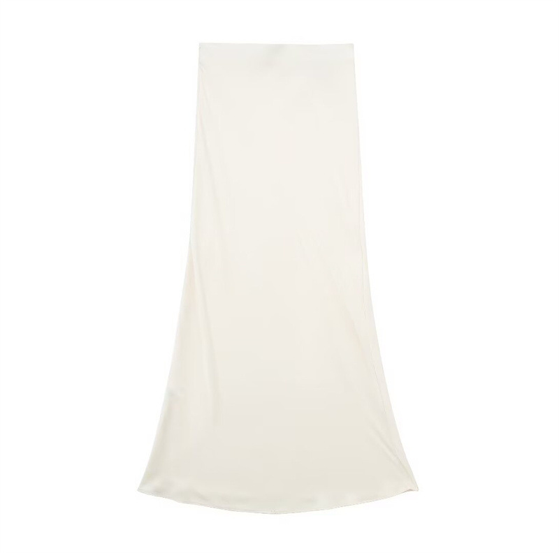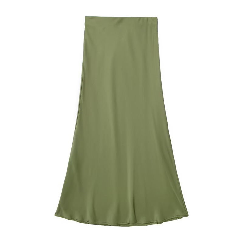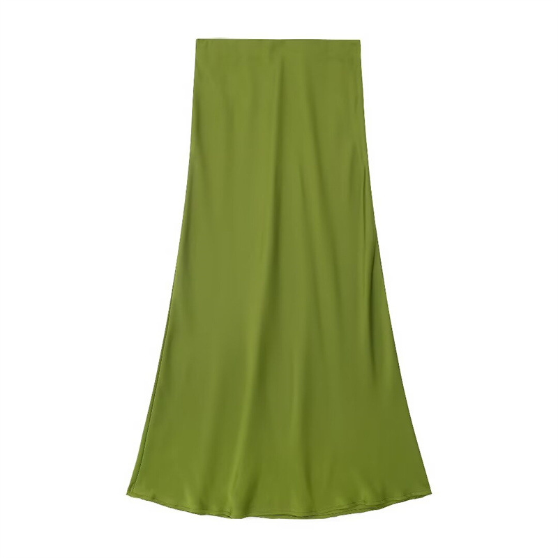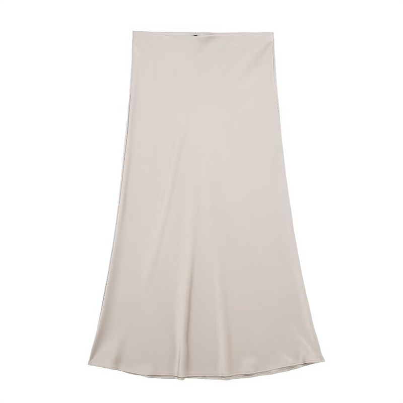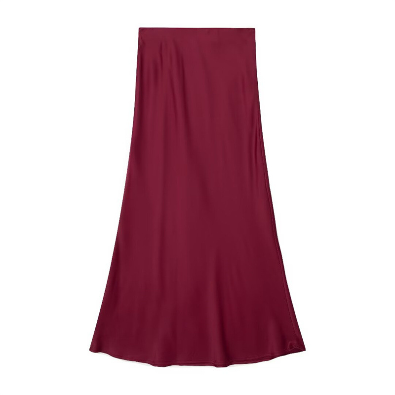Solid Color Slim Silk Satin Texture Midi Skirt