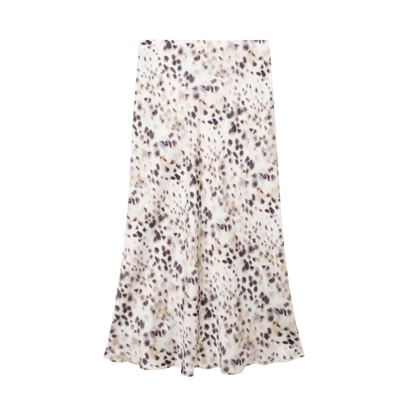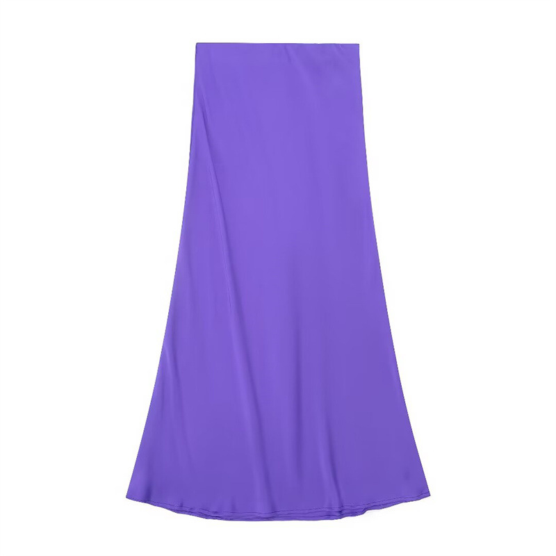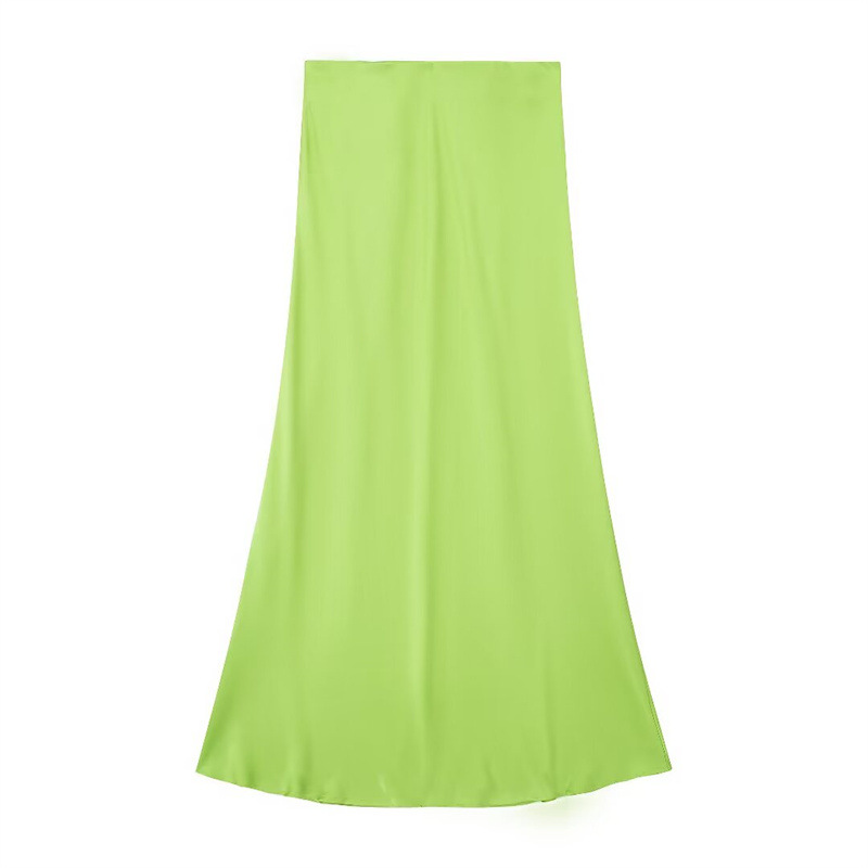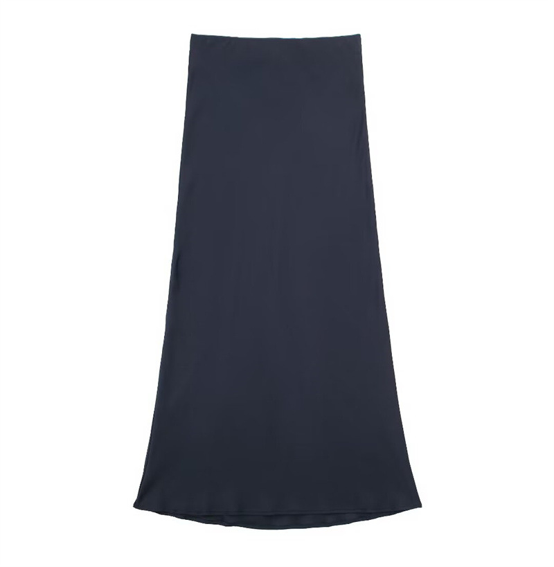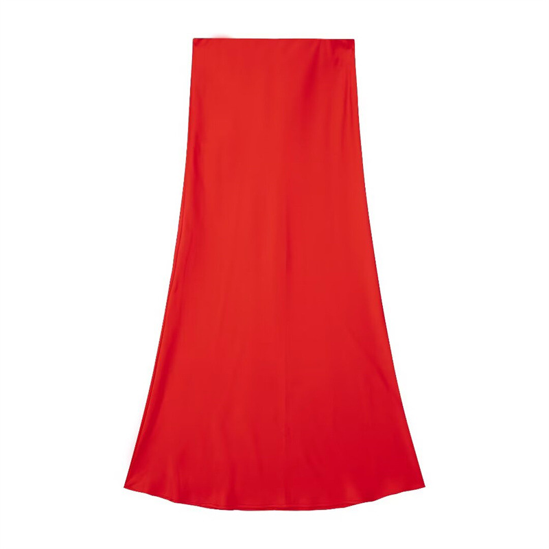 Solid Color Slim Silk Satin Texture Midi Skirt