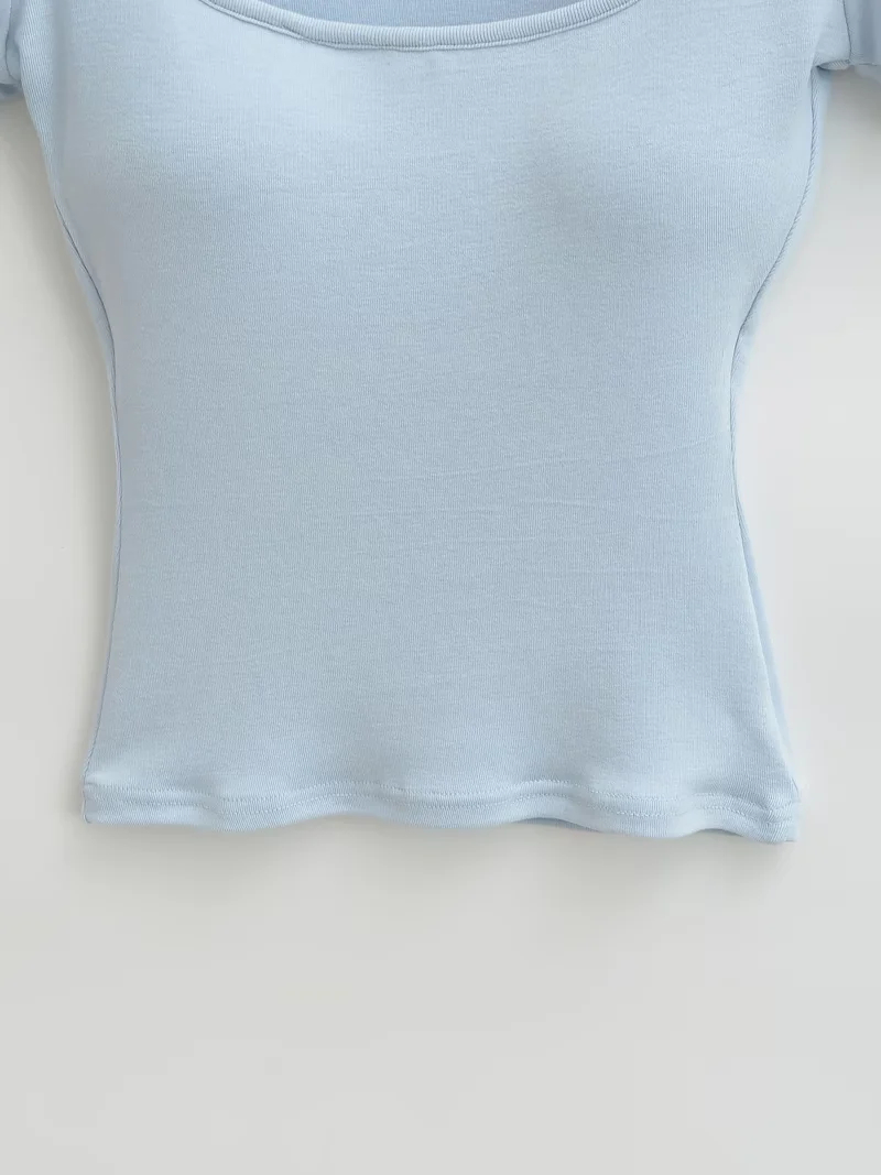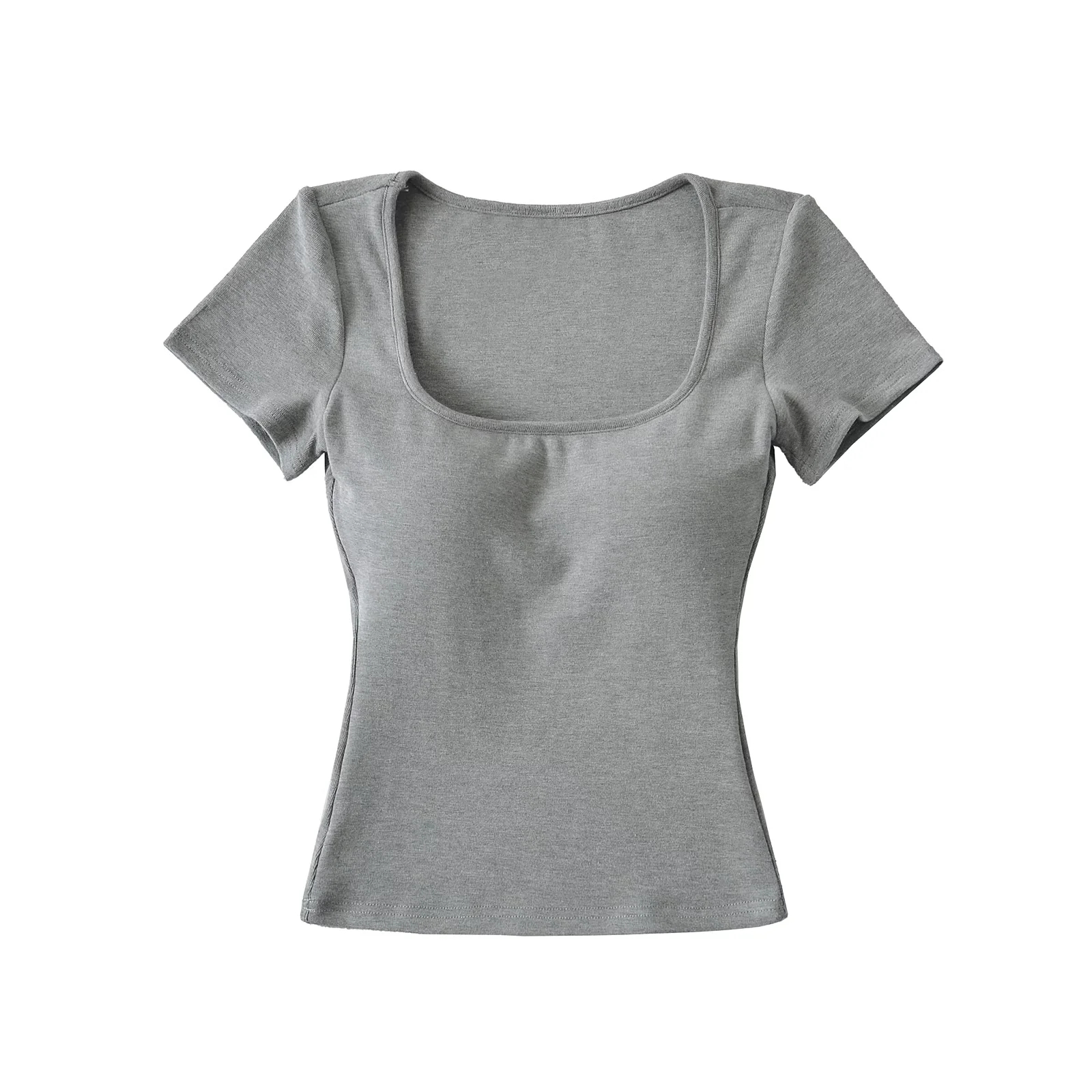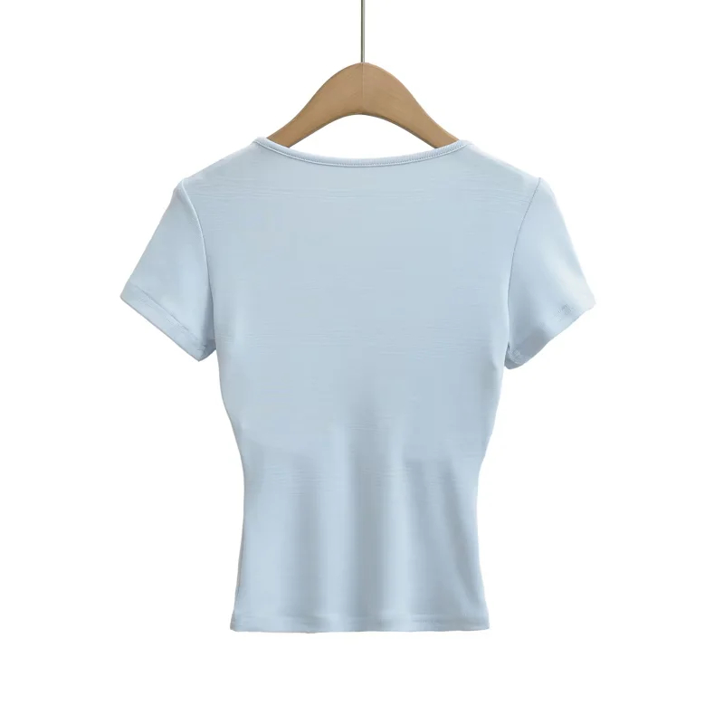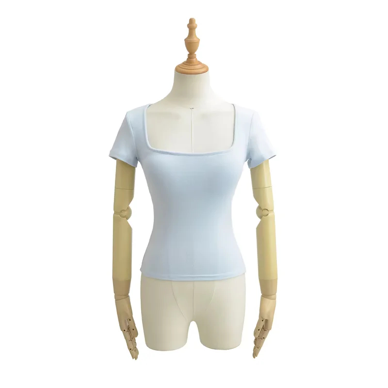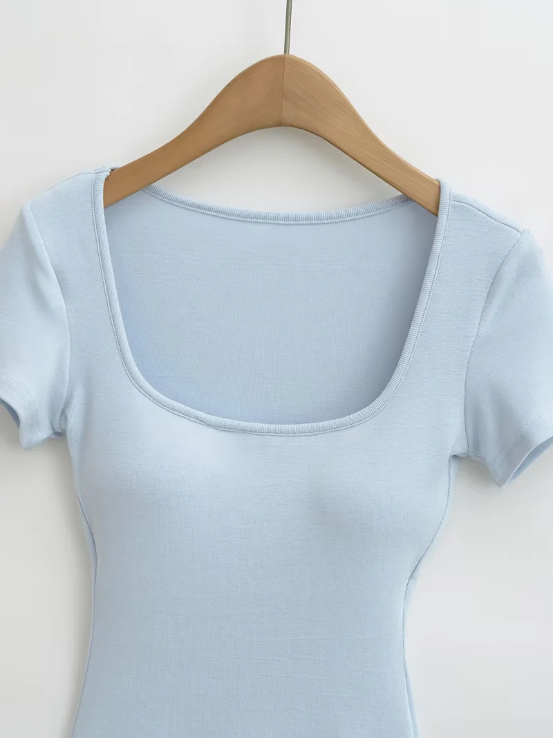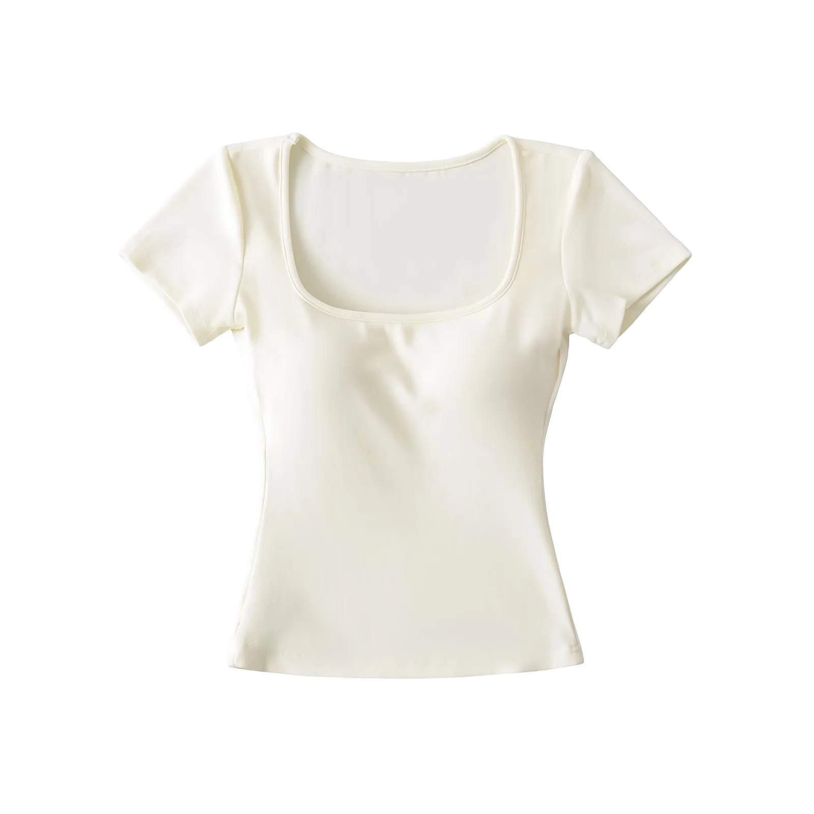 Solid-color Square-neck Short-sleeve T-shirt With Chest Pads