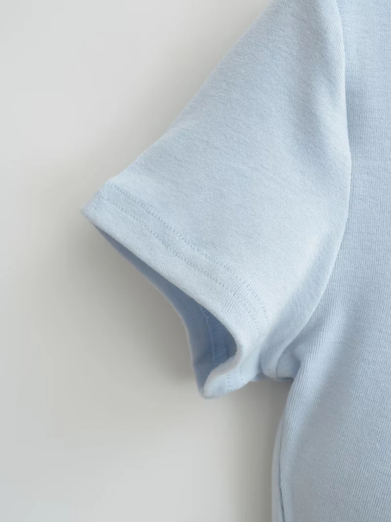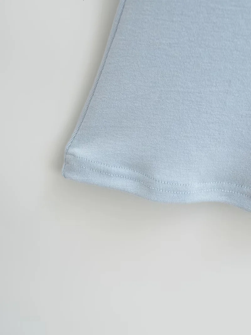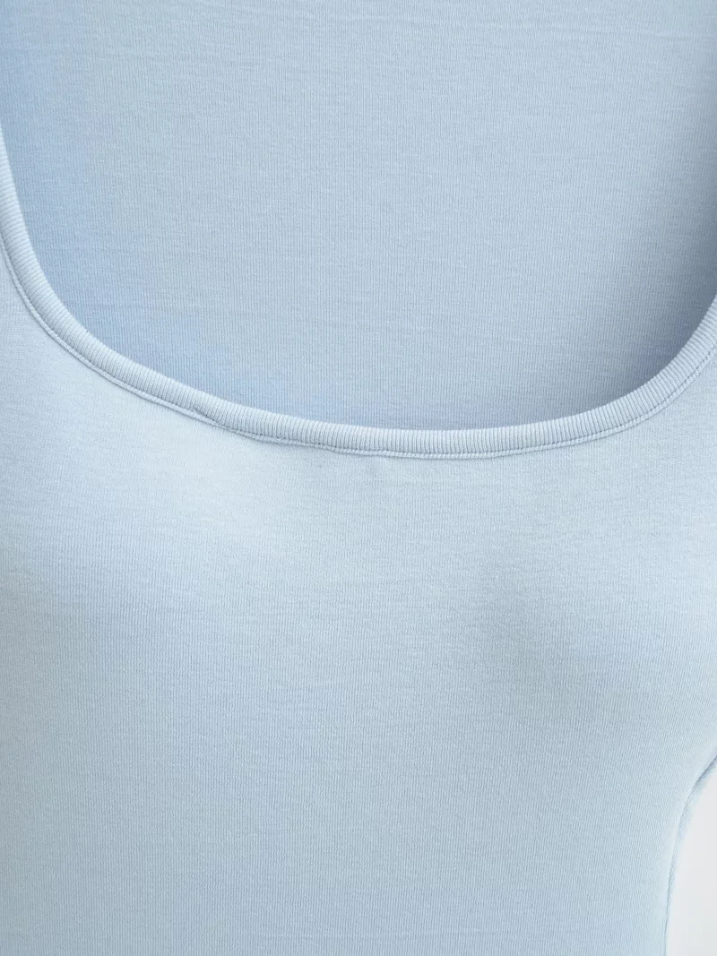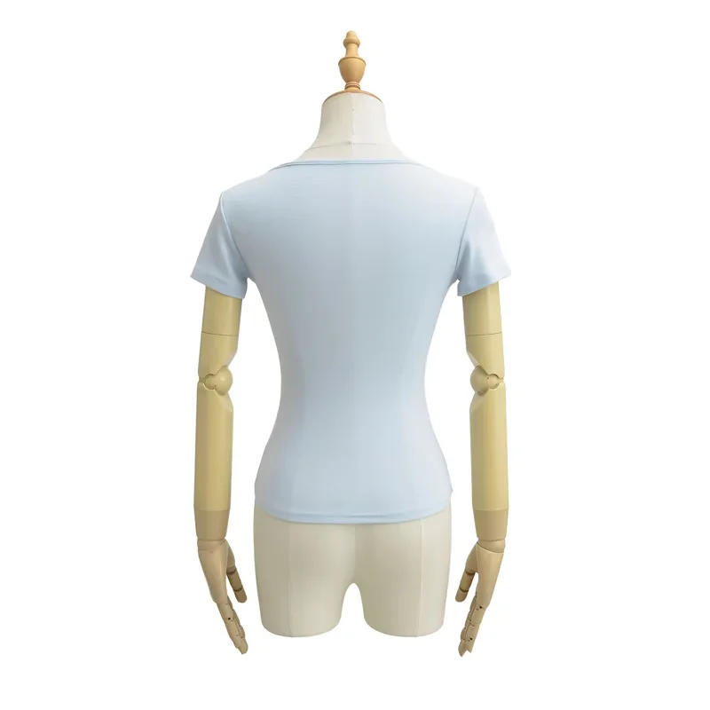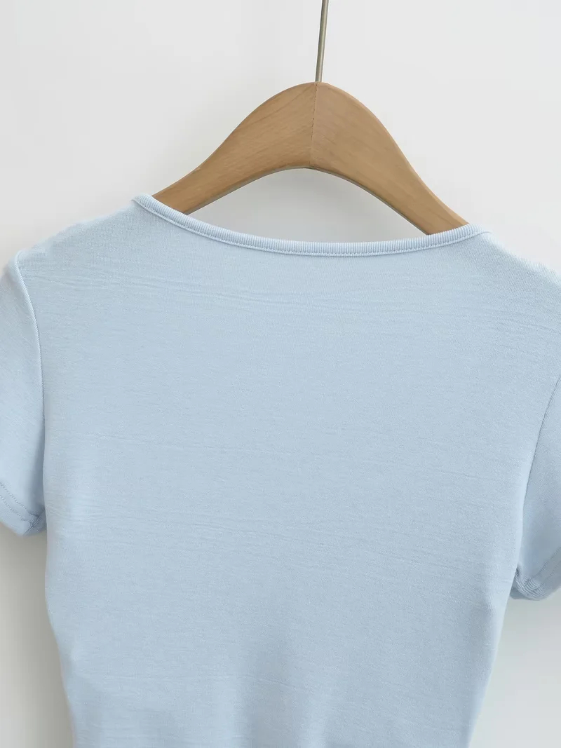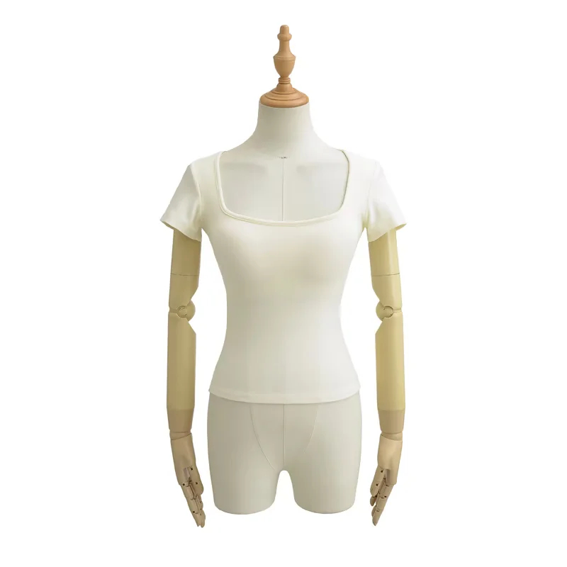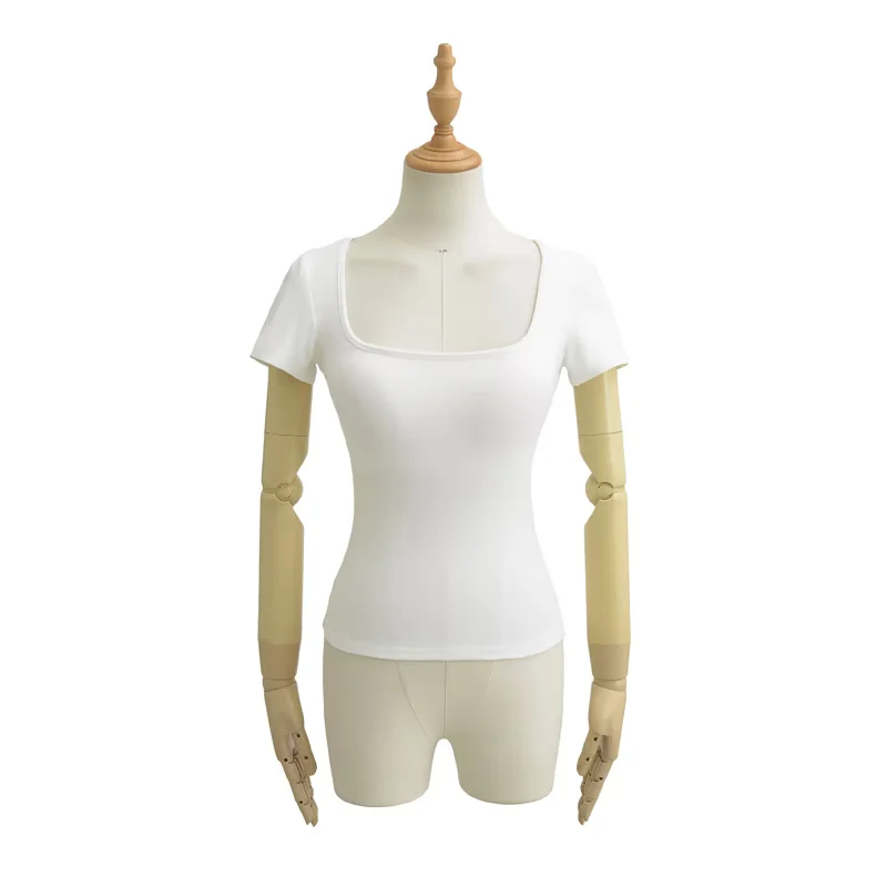 Solid-color Square-neck Short-sleeve T-shirt With Chest Pads