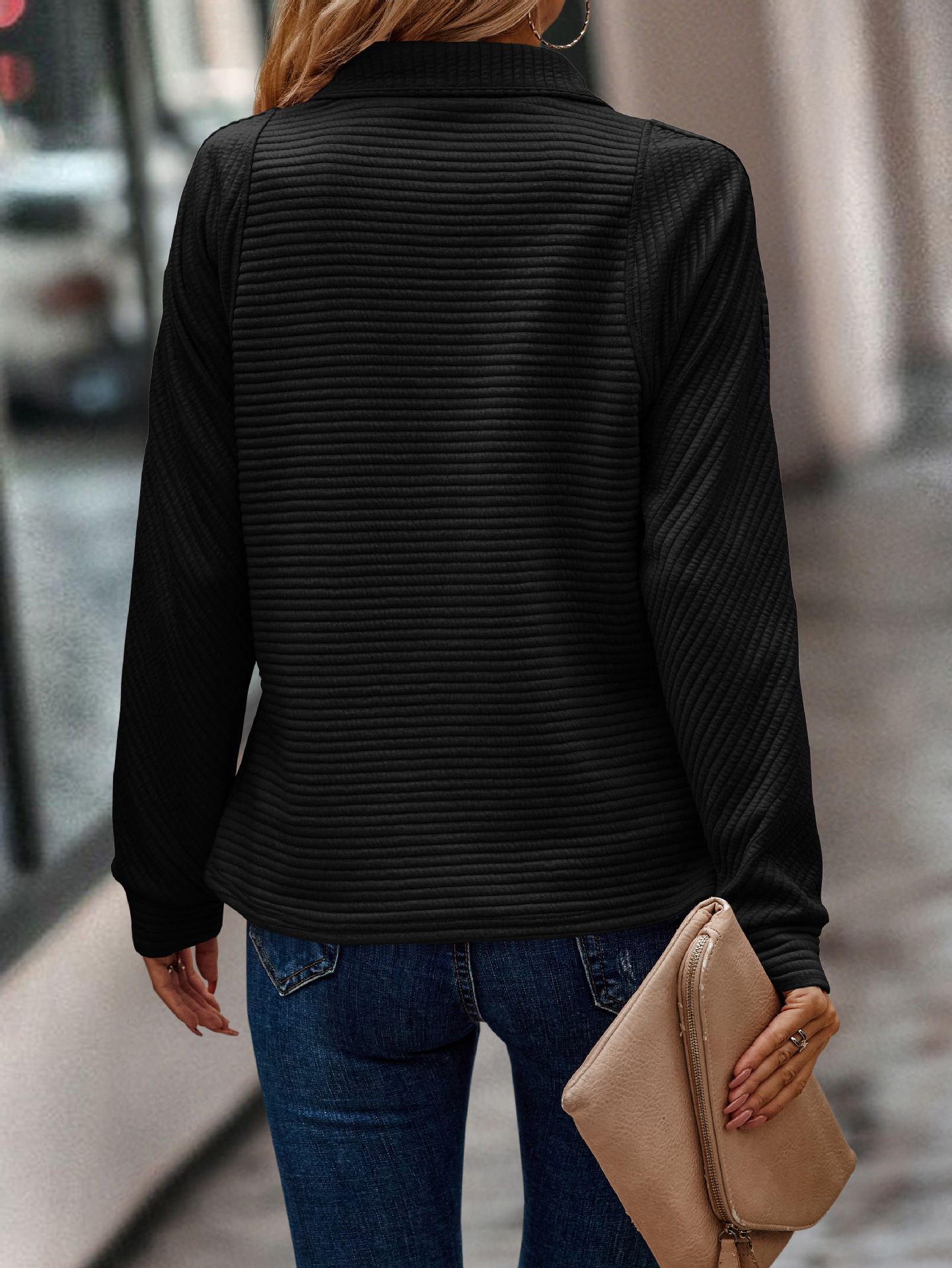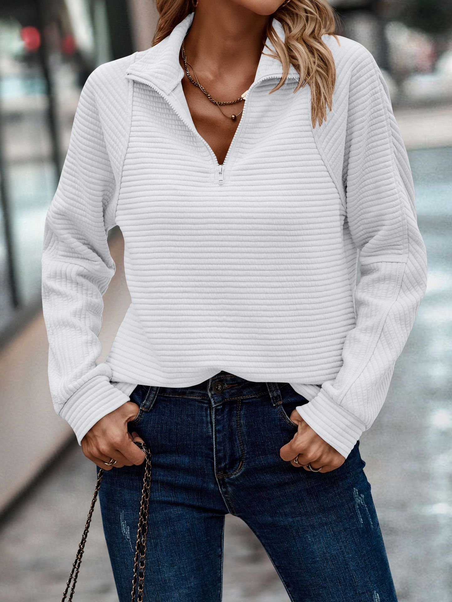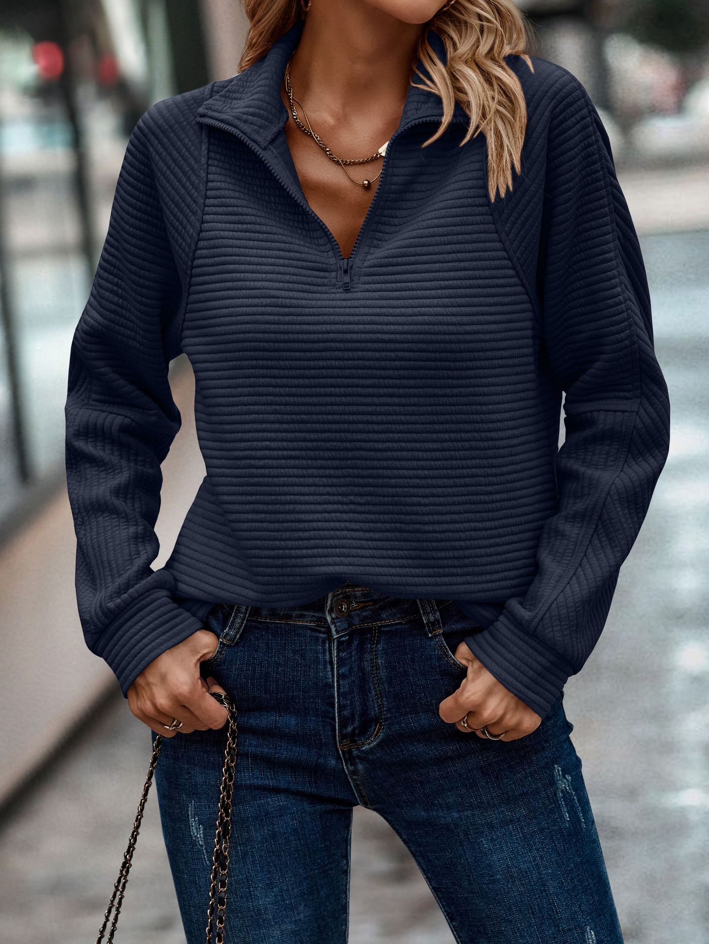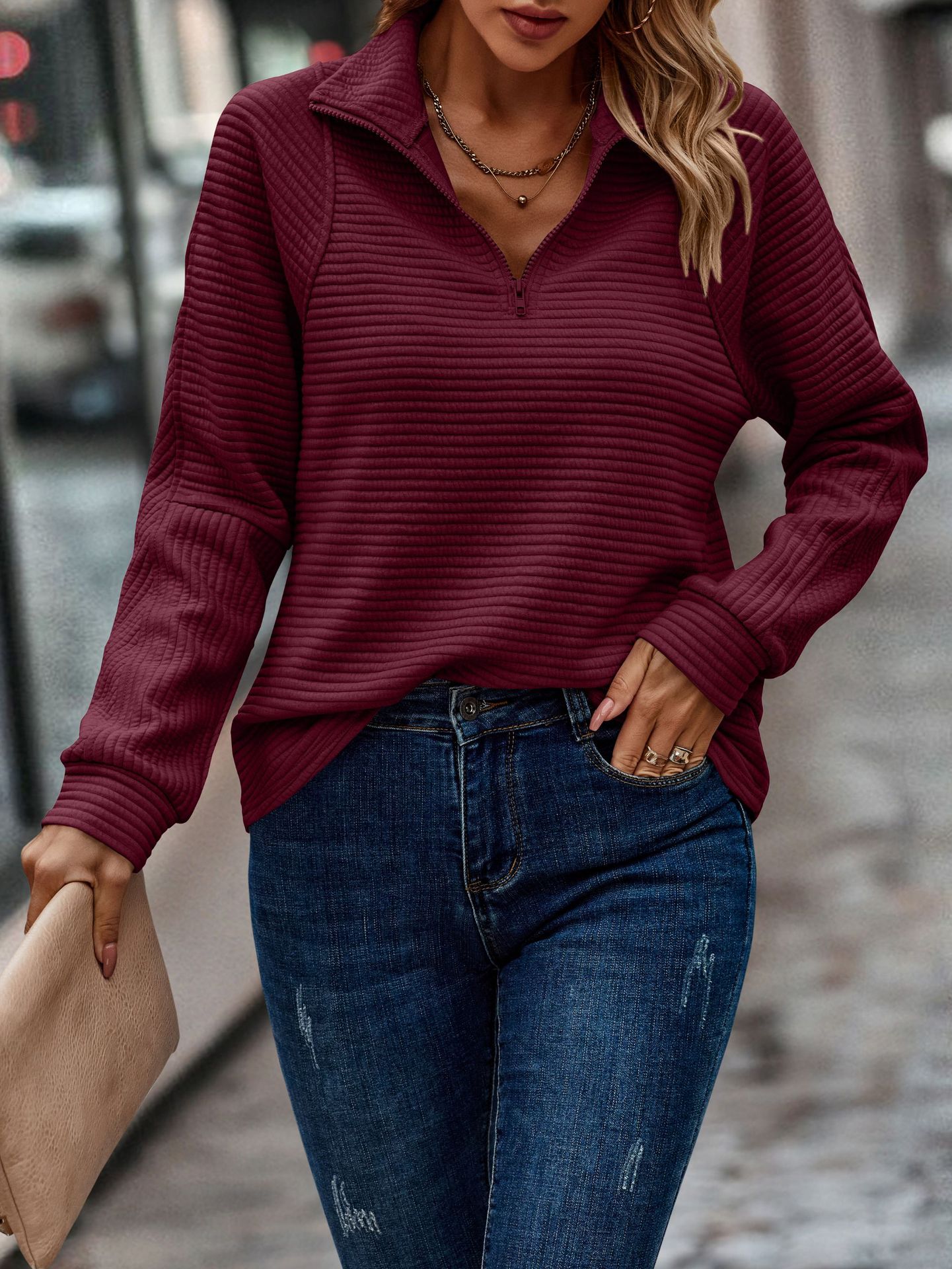 Solid Color Stand Collar Women's Knitted Sweater
