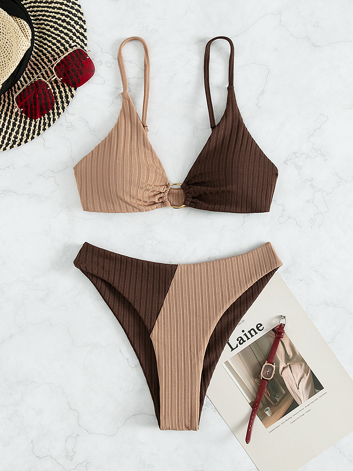 Solid Color Stitching Bikini