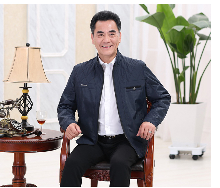 Features: Stand-up collar, side slit pocket