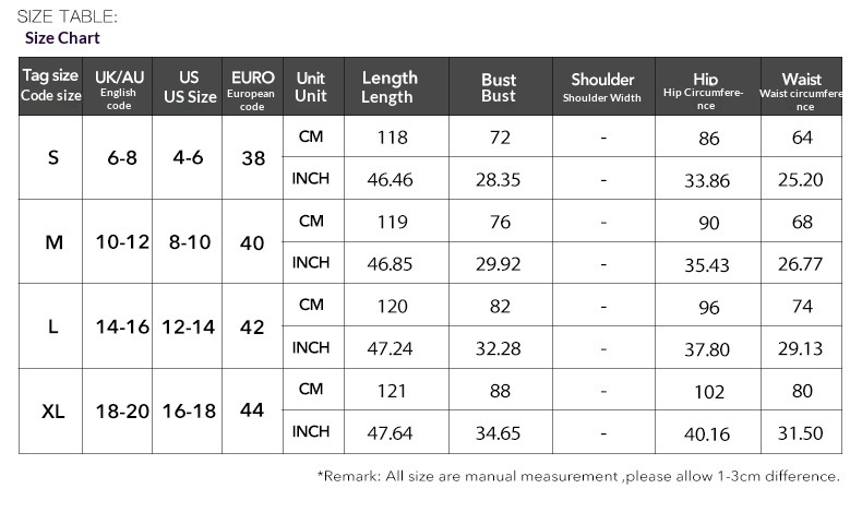 1. Asian sizes are 1 to 2 sizes smaller than European and American people. Choose the larger size if your size between two sizes. Please allow 2-3cm differences due to manual measurement. 2. Please check the size chart carefully before you buy the item, if you don't know how to choose size, please contact our customer service. 3.As you know, the different computers display colors differently, the color of the actual item may vary slightly from the following images.