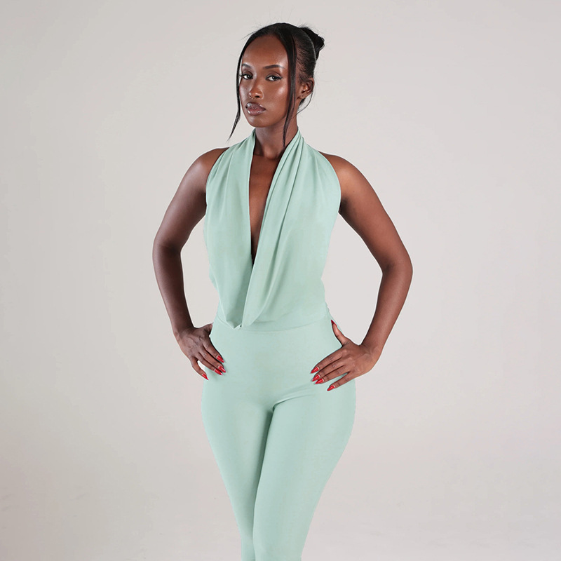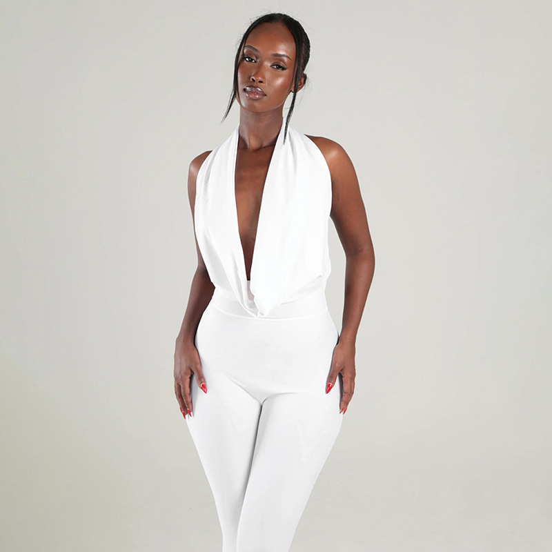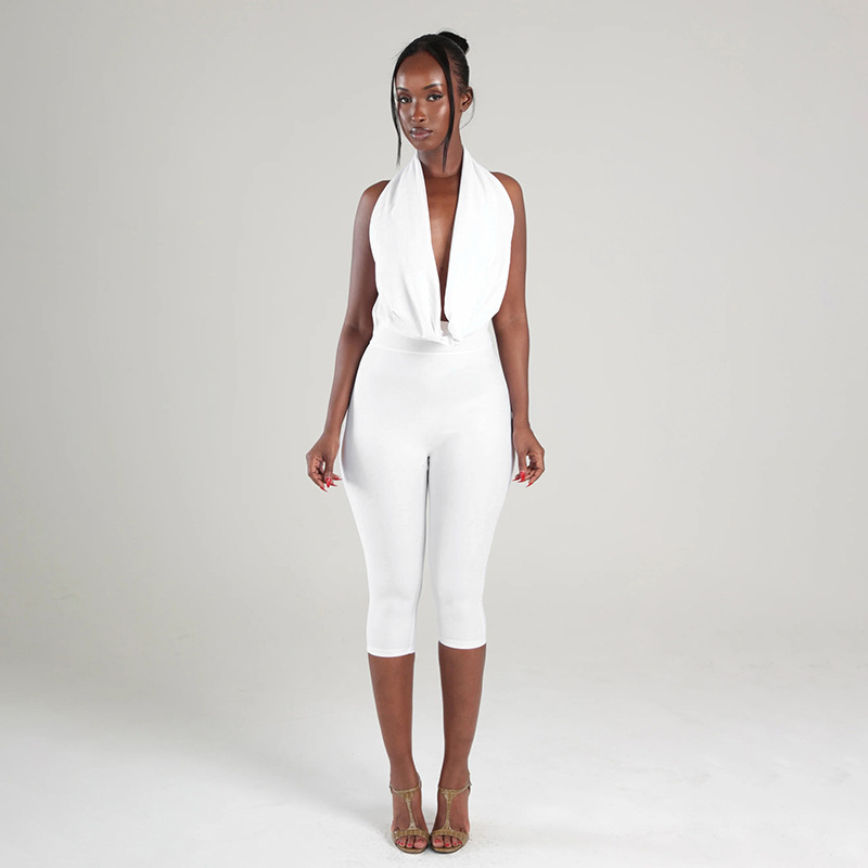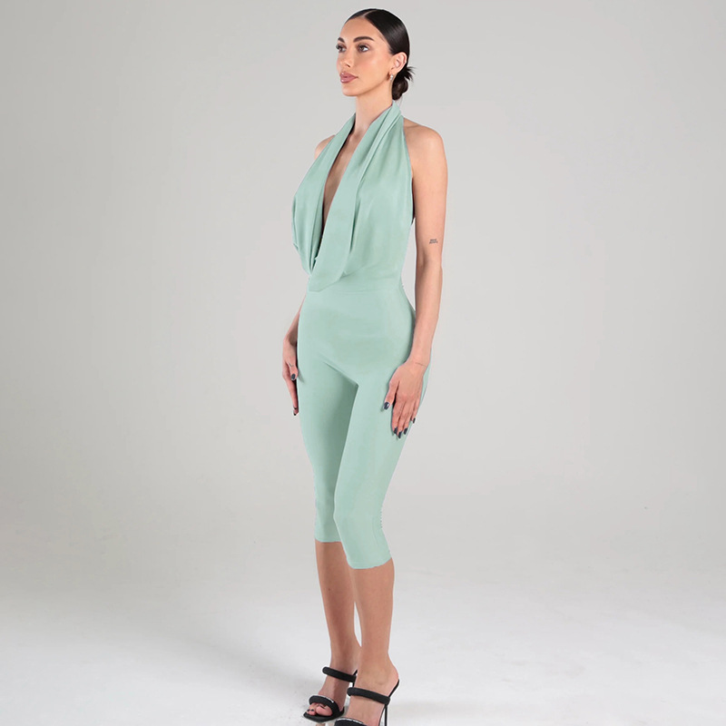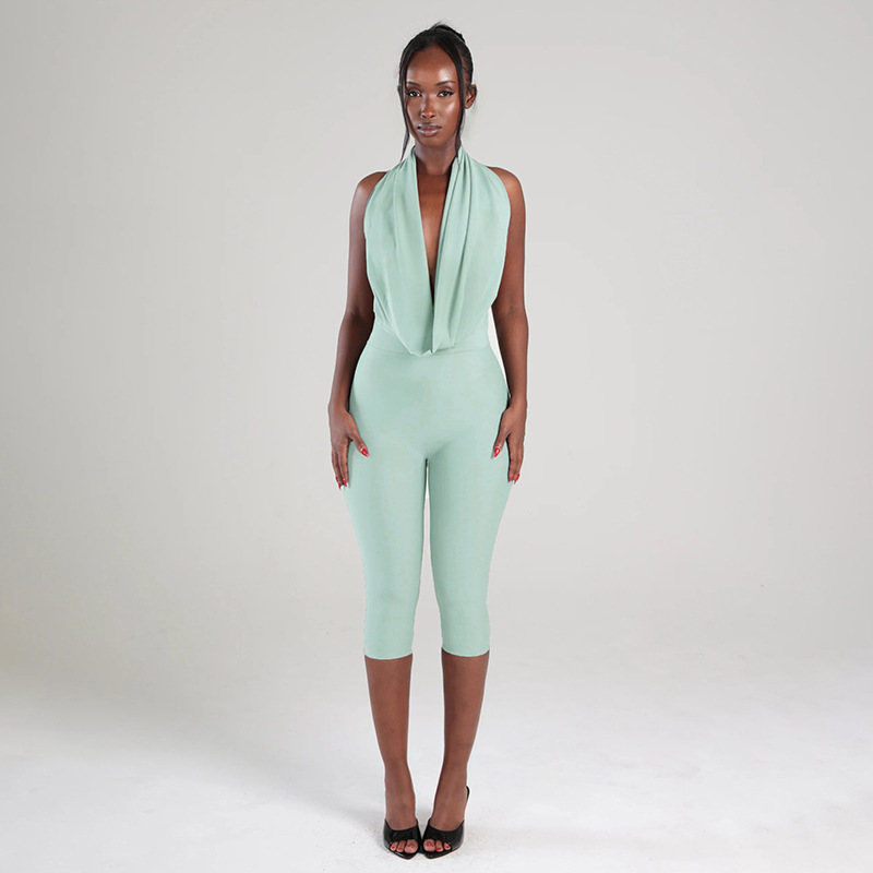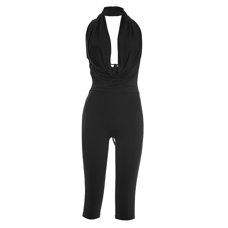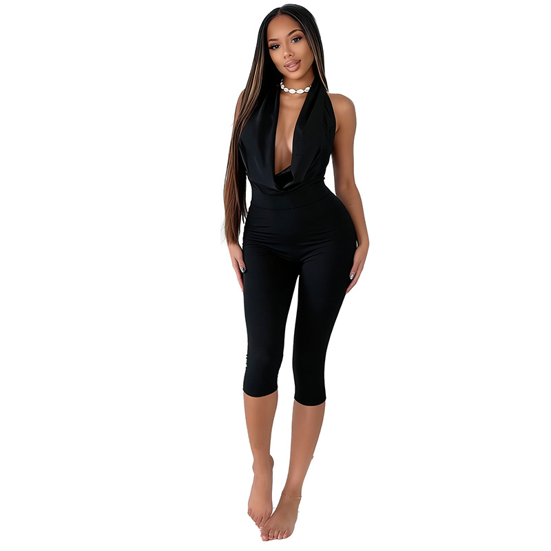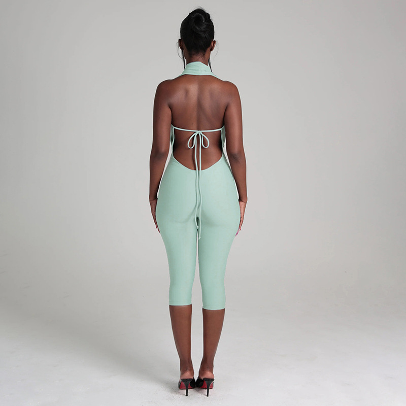 Solid-color Strap-tied Hip-hugging Capri Jumpsuit