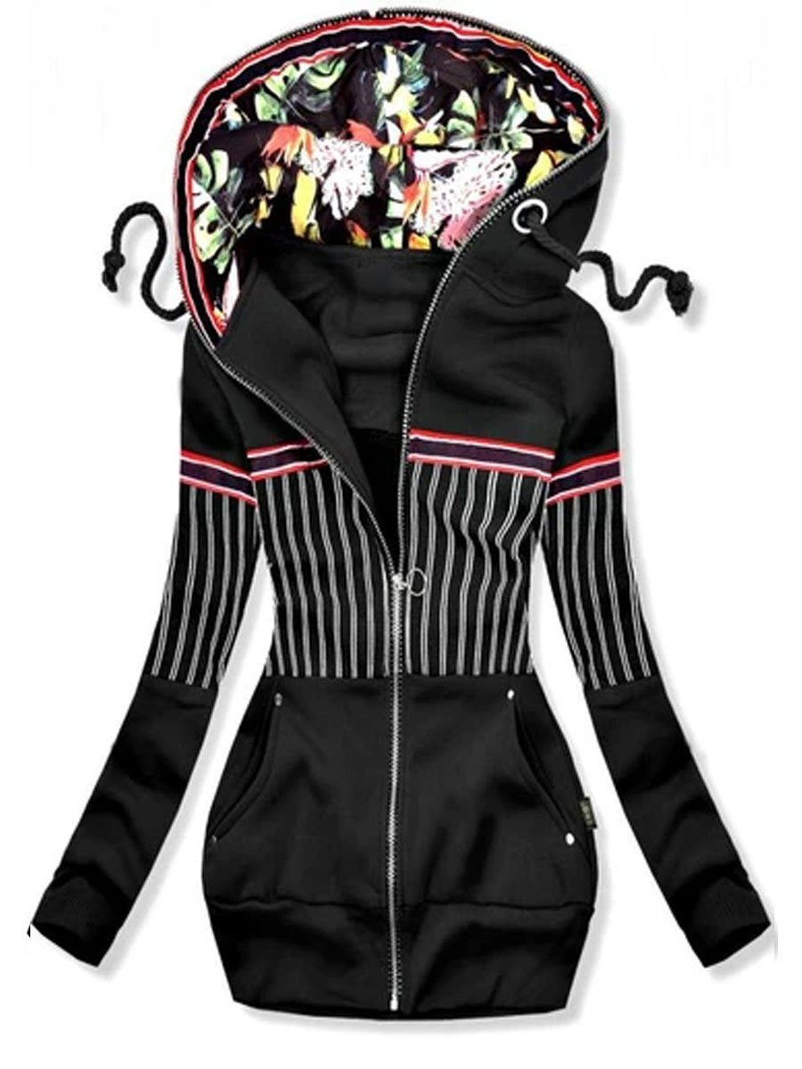 Solid Color Striped Printed Sweater plus Velvet