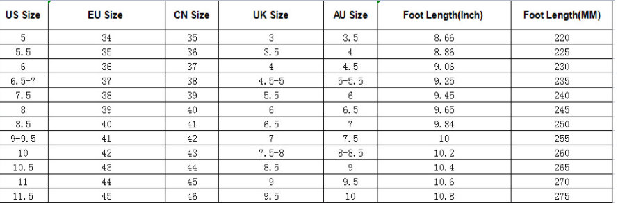 Sizes: 35, 36, 37, 38, 39, 40, 41, 42, 43, 44