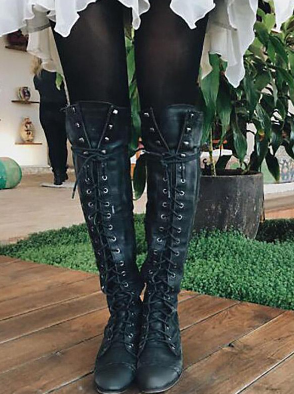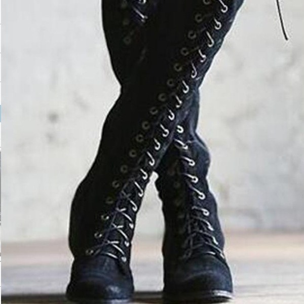 Solid Color Thick Low Heel High-top Lace-up Fashion Women's Boots