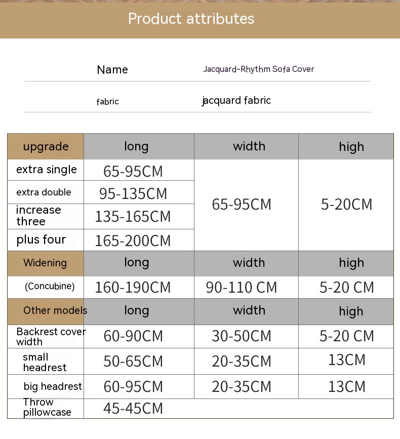 Size: Upgraded plus size single width 65-95cm length 65-95cm, upgraded plus size double width 65-95cm length 95-135cm, upgraded plus size three width 65-95cm length 135-165cm, upgraded plus size width 65-95cm length 165-200cm, widened style width 90-110cm * length 160-190cm, seat cover 30-50cm * length 60-90 * height 5-20CM, small headrest width 20-35cm length 50-65cm thickness 13CM, large headrest width 20-35cm length 60-95cm thickness 13CM, same pillowcase 45 * 45cm only sold in batches