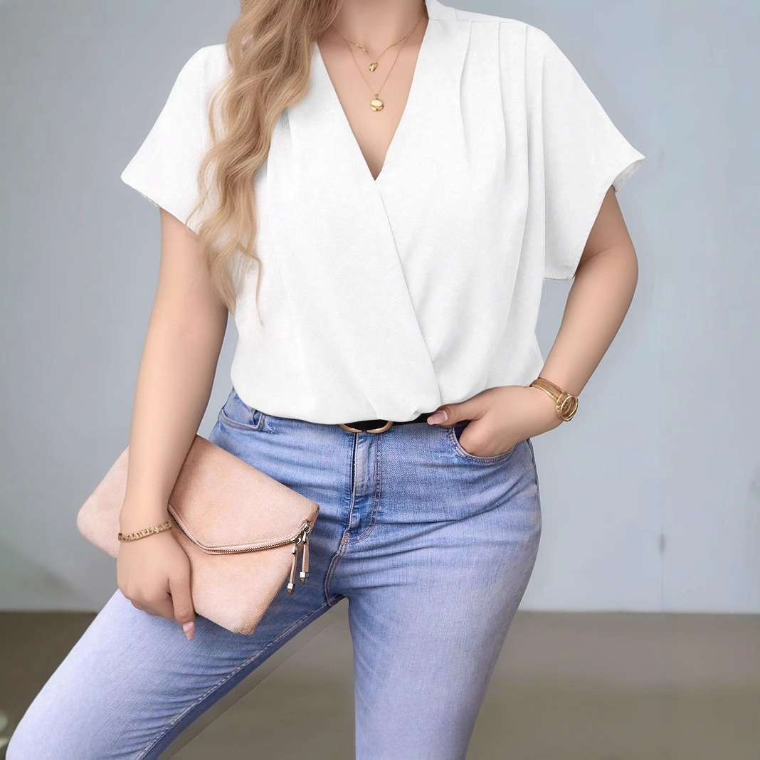 Solid Color V-neck Shirt Casual Short Sleeve Loose T-shirt